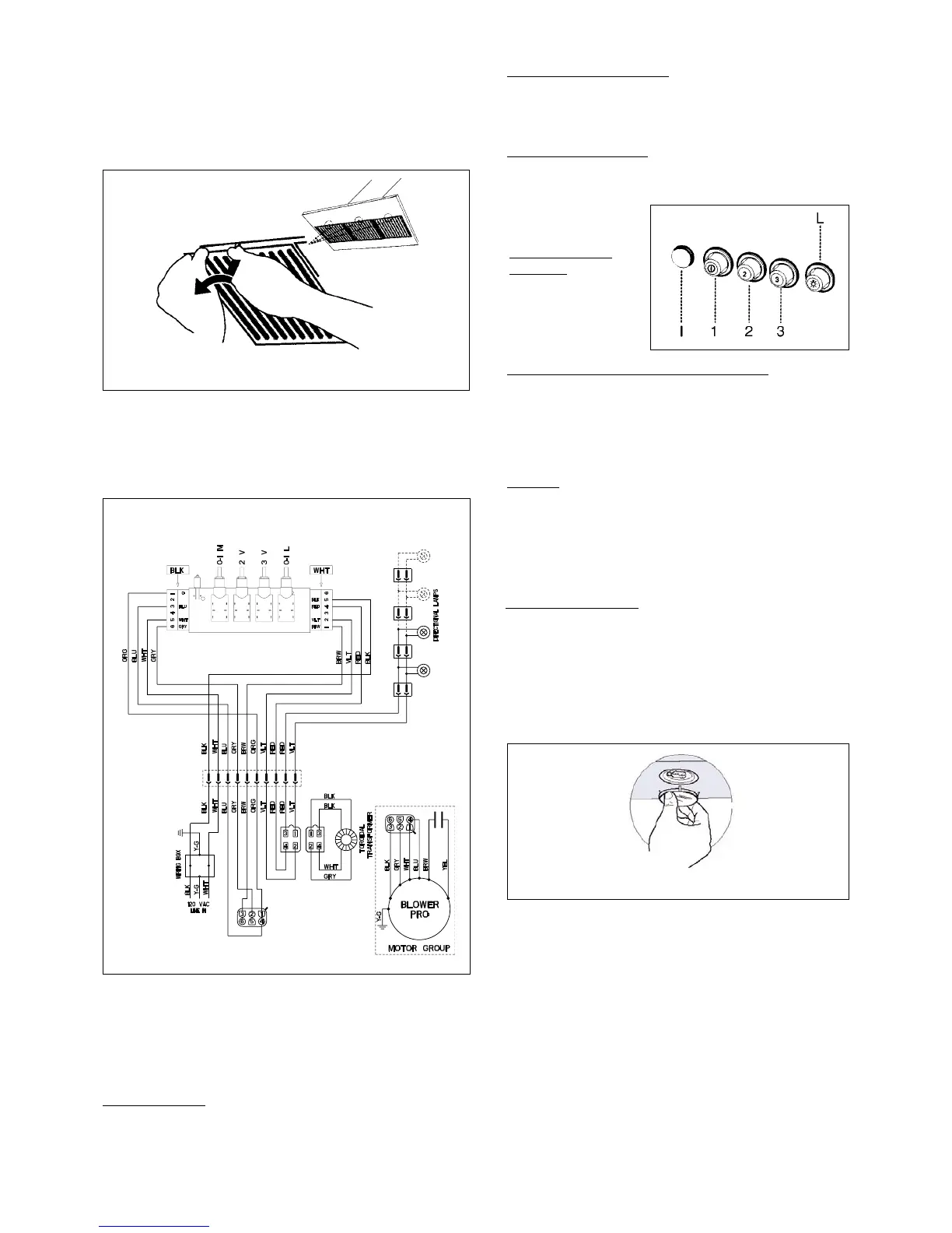 speed chosen. Button (1) operates the blower on LOW
