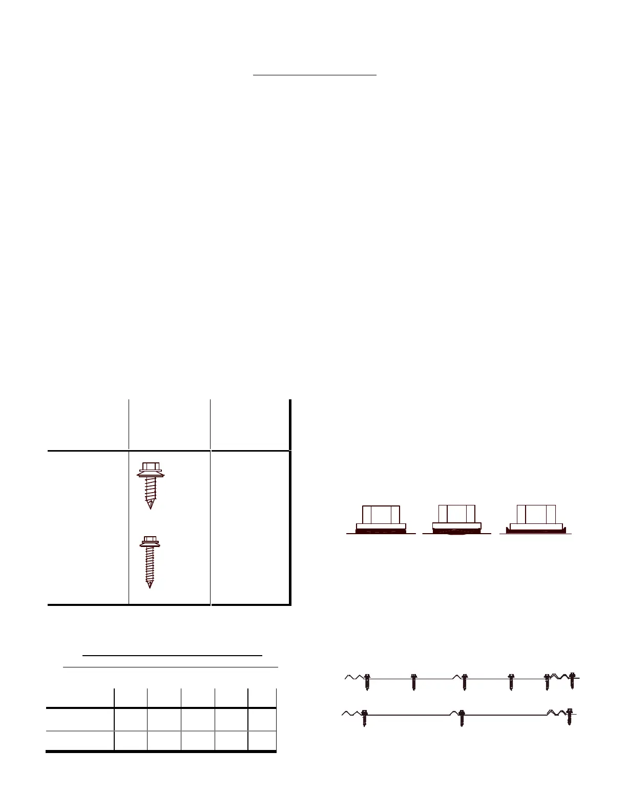 Listed are the fasteners recommended for the proper