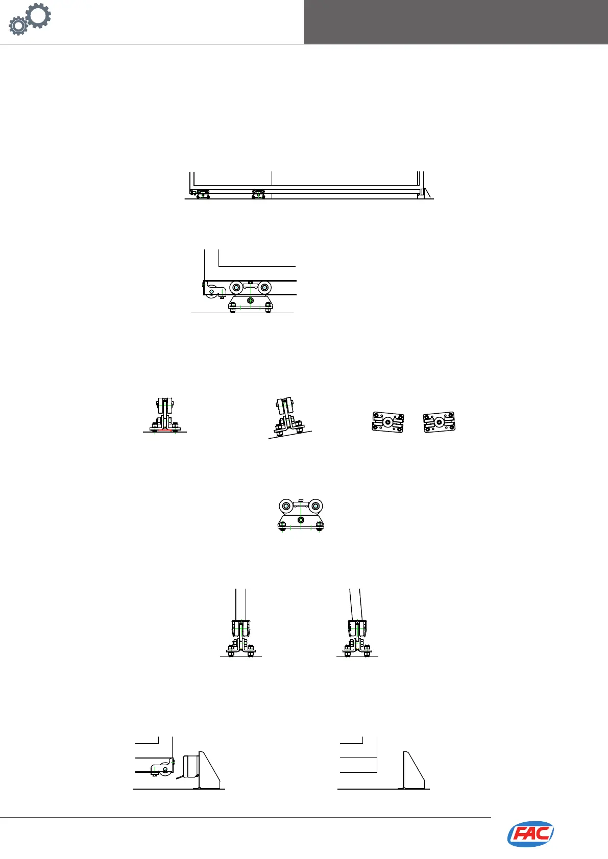 the trolleys must be aligned along the sliding axis of the gate and make sure the bases are perfectly