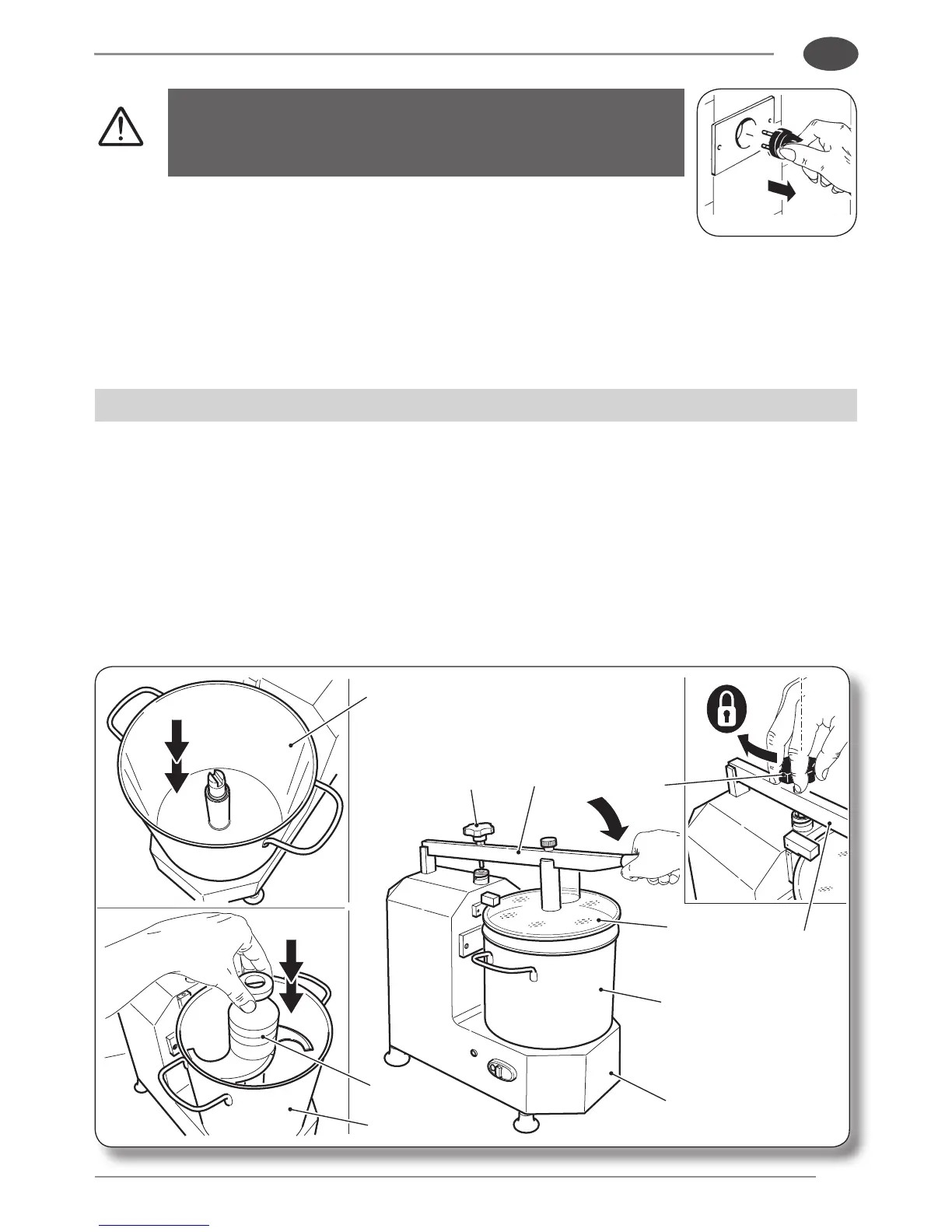 - Close the cover (6) and lock the lever (3) by turning the knob (4).
