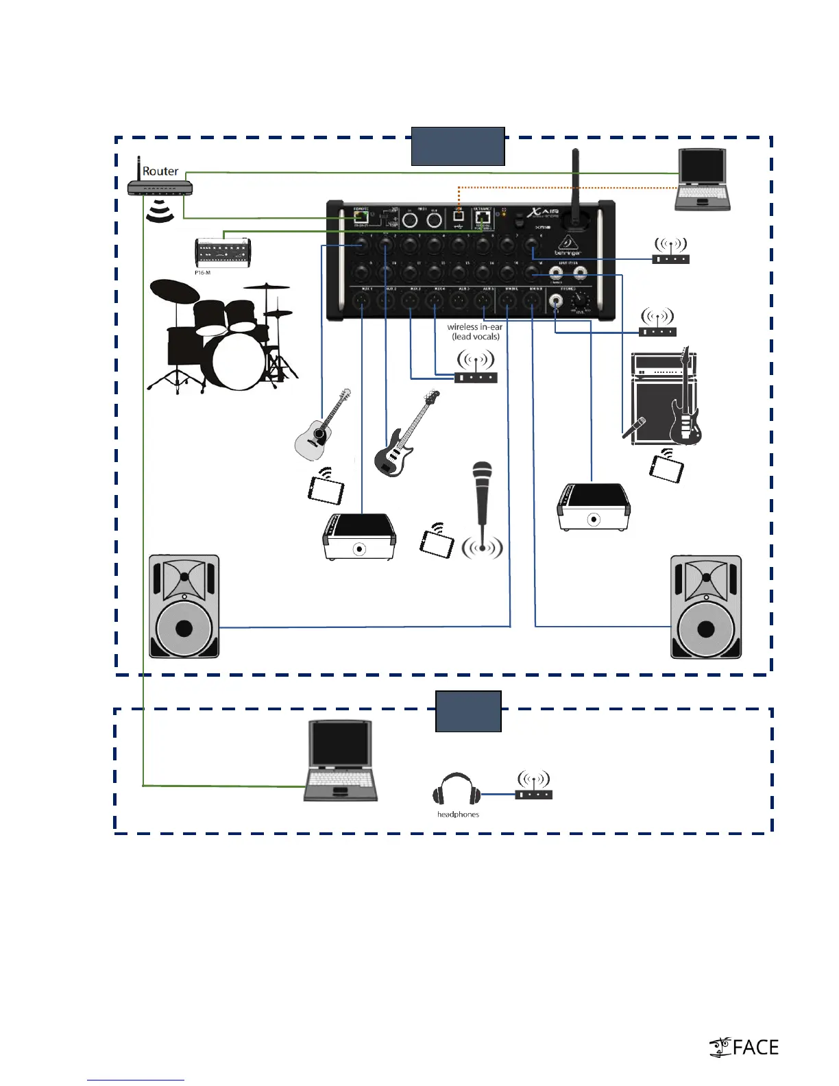 Hook-up example – Live performance Band – Ethernet mode – no dependency on WiFi