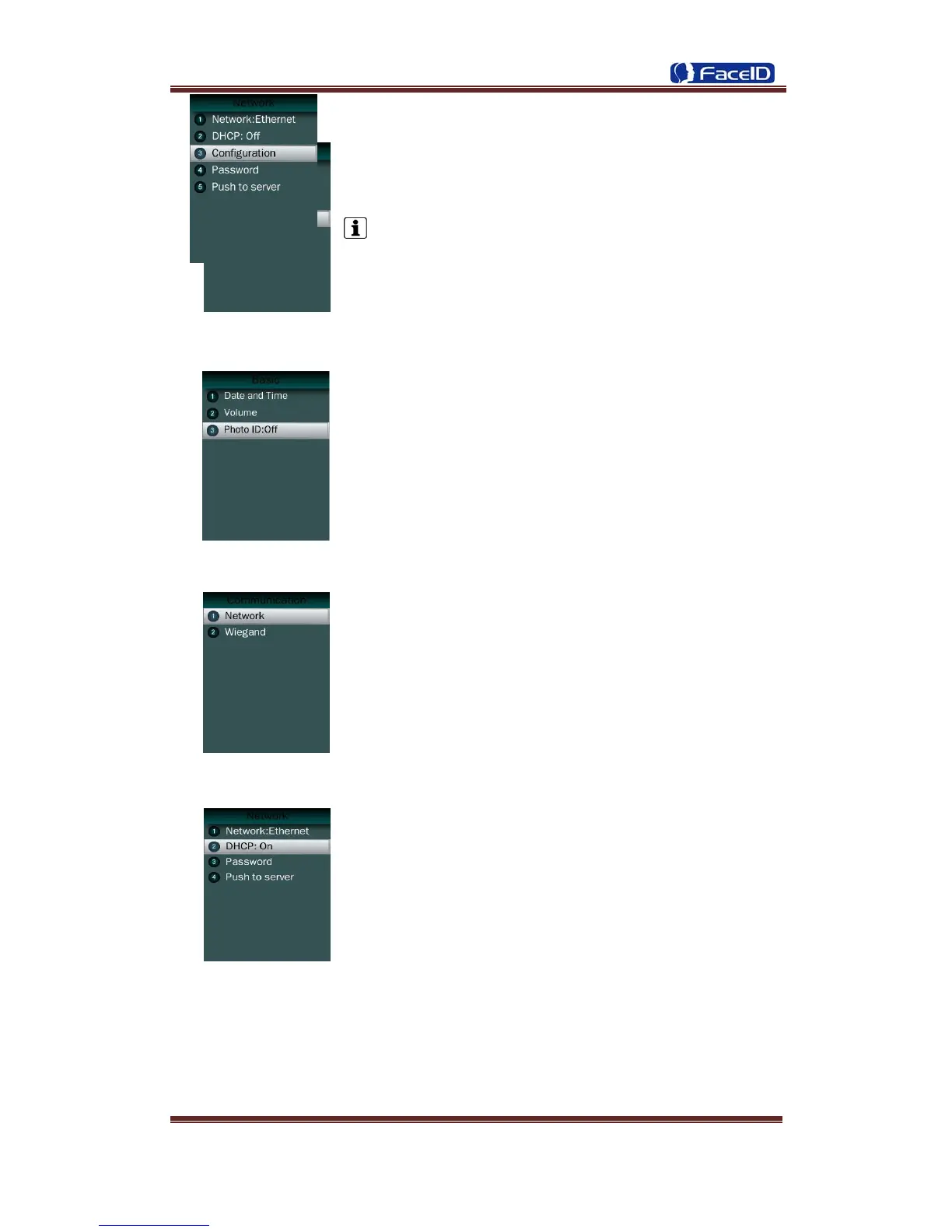 Communication: Network and Wiegand setting.