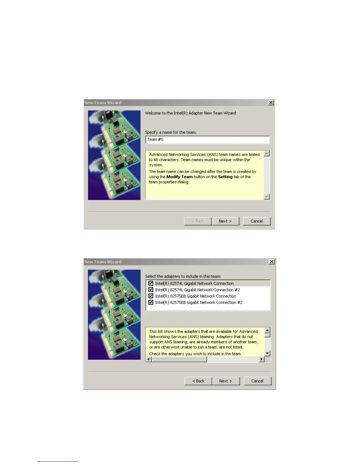 6. In the next New Team Wizard window select all four Network adapters in