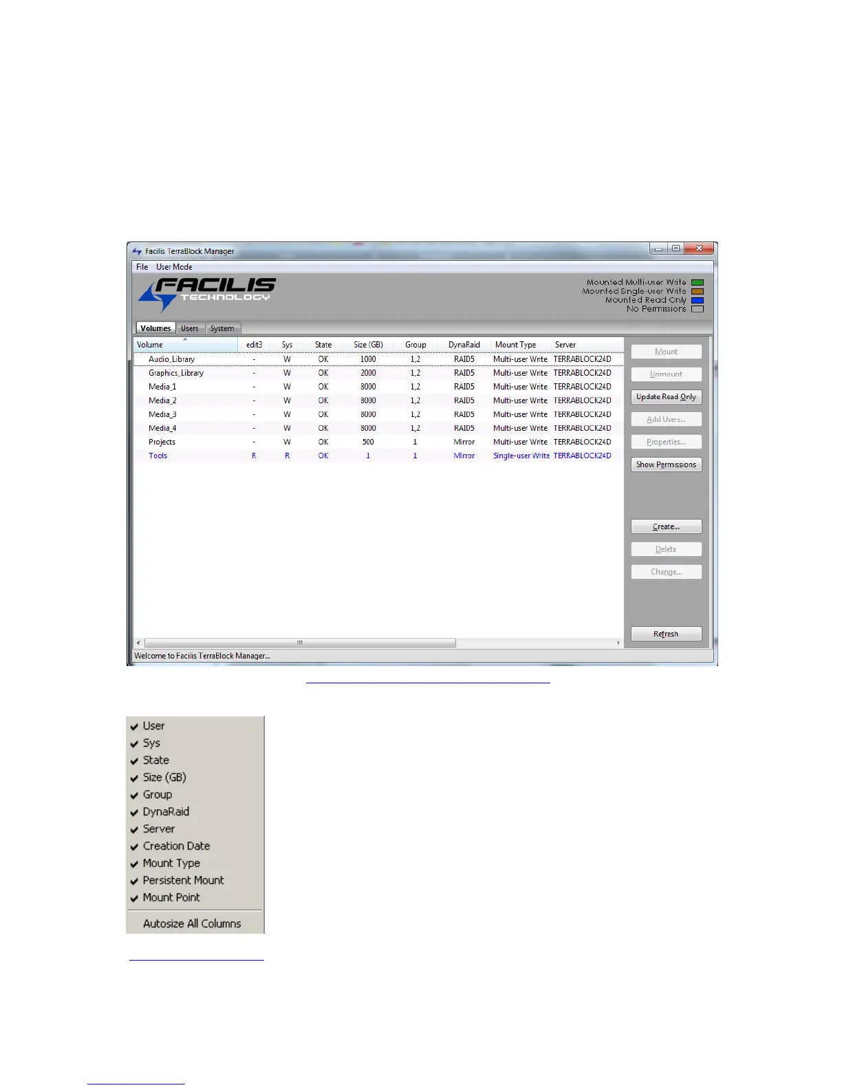 volumes to users, mount, un-mount and update volumes. The TerraBlock Manager