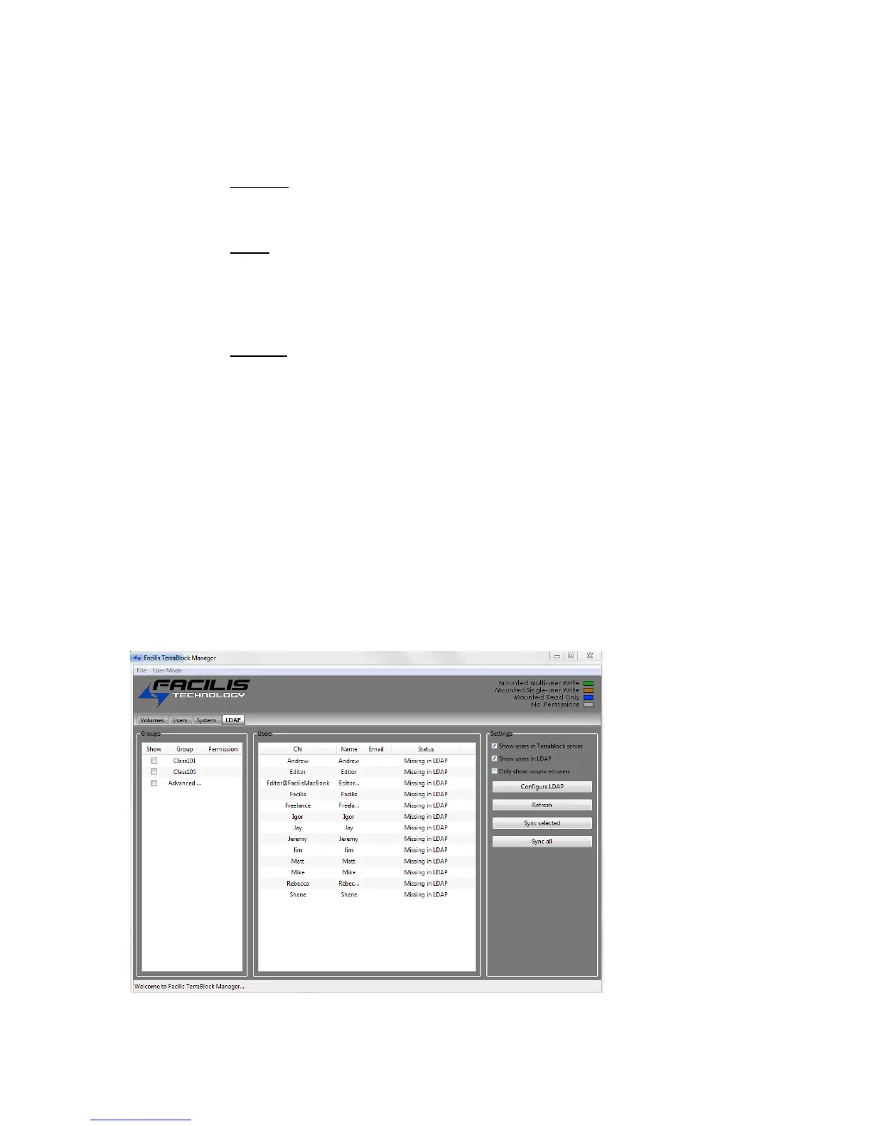 privileges. Users from the LDAP or Active Directory server can then be synced or