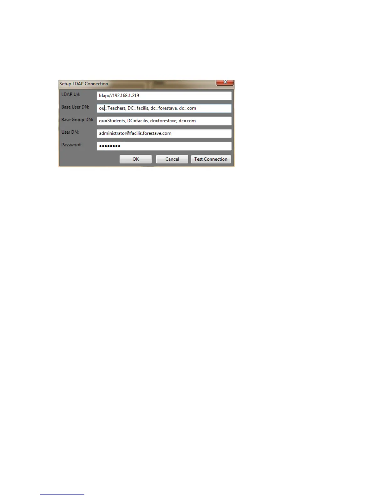 Use the ‘Test Connection’ button to test the connection to the LDAP server. If