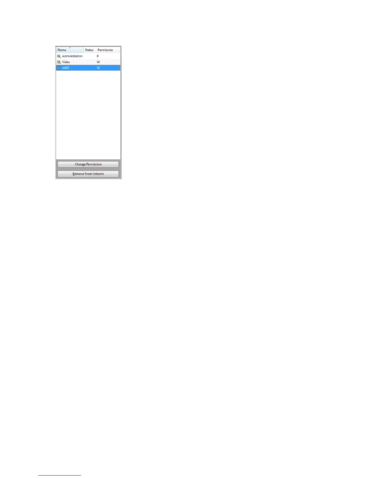 Remove From Volume – User and group permissions can