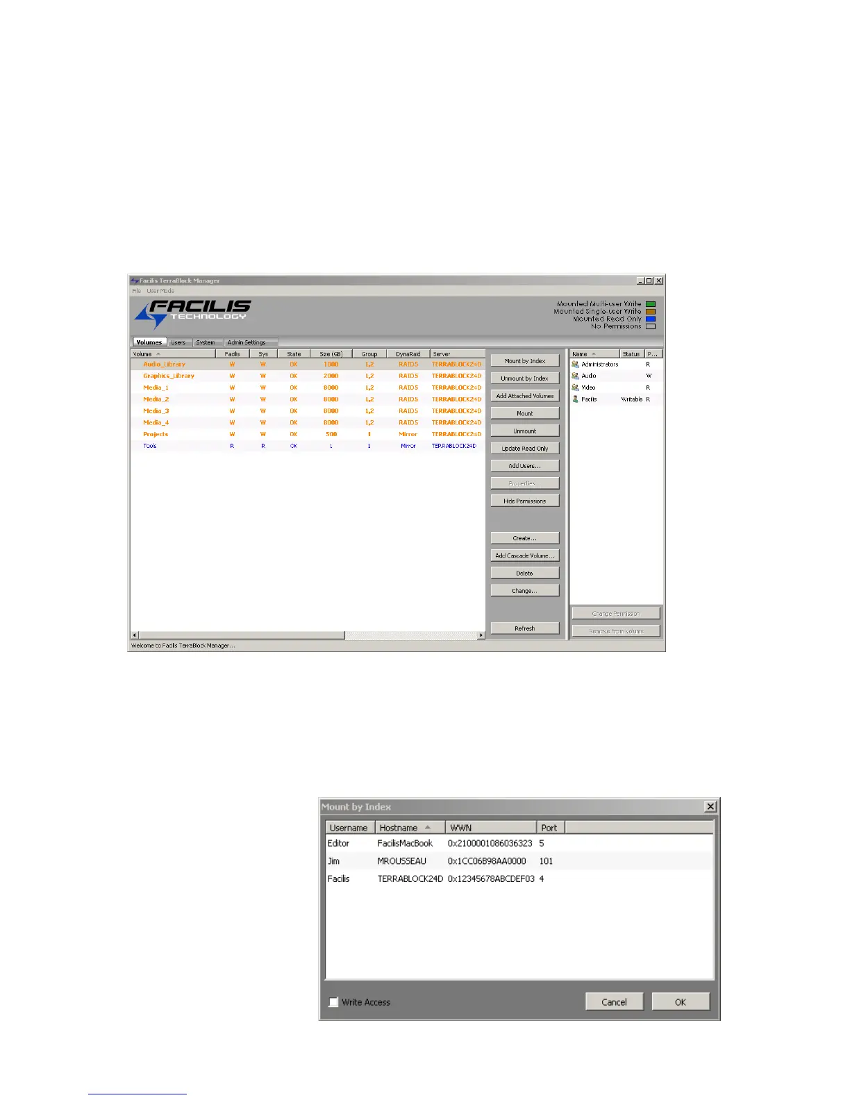 In the example above, the Volumes tab shows the features of Mount and Un-mount