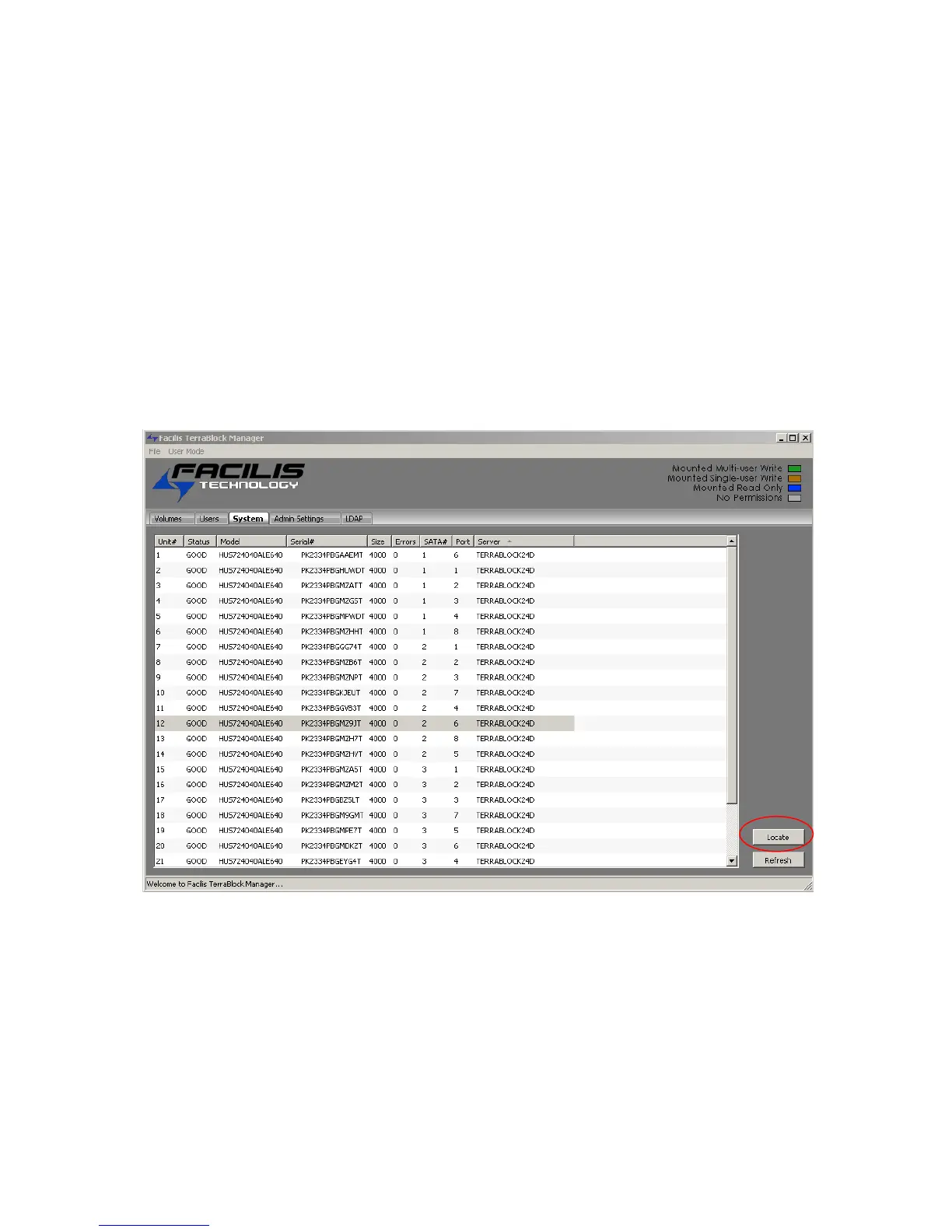 running on. Pressing the Locate button causes the selected physical drive’s disk