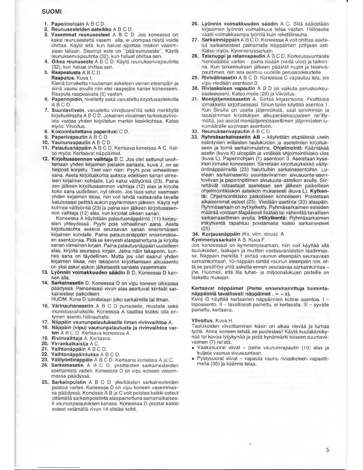 12. Kirjoitusasennon vaihtaja B C.