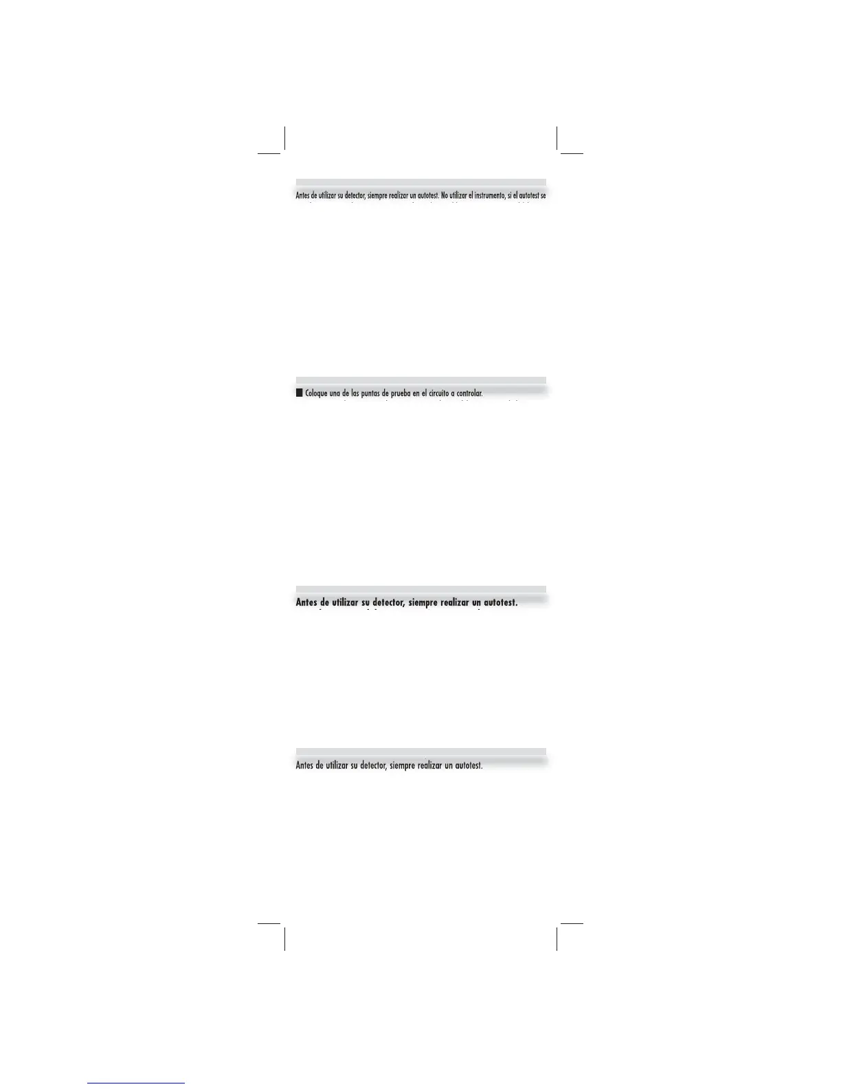 Antes de utilizar su detector, siempre realizar un autotest. No utilizar el instrumento, si el autotest se