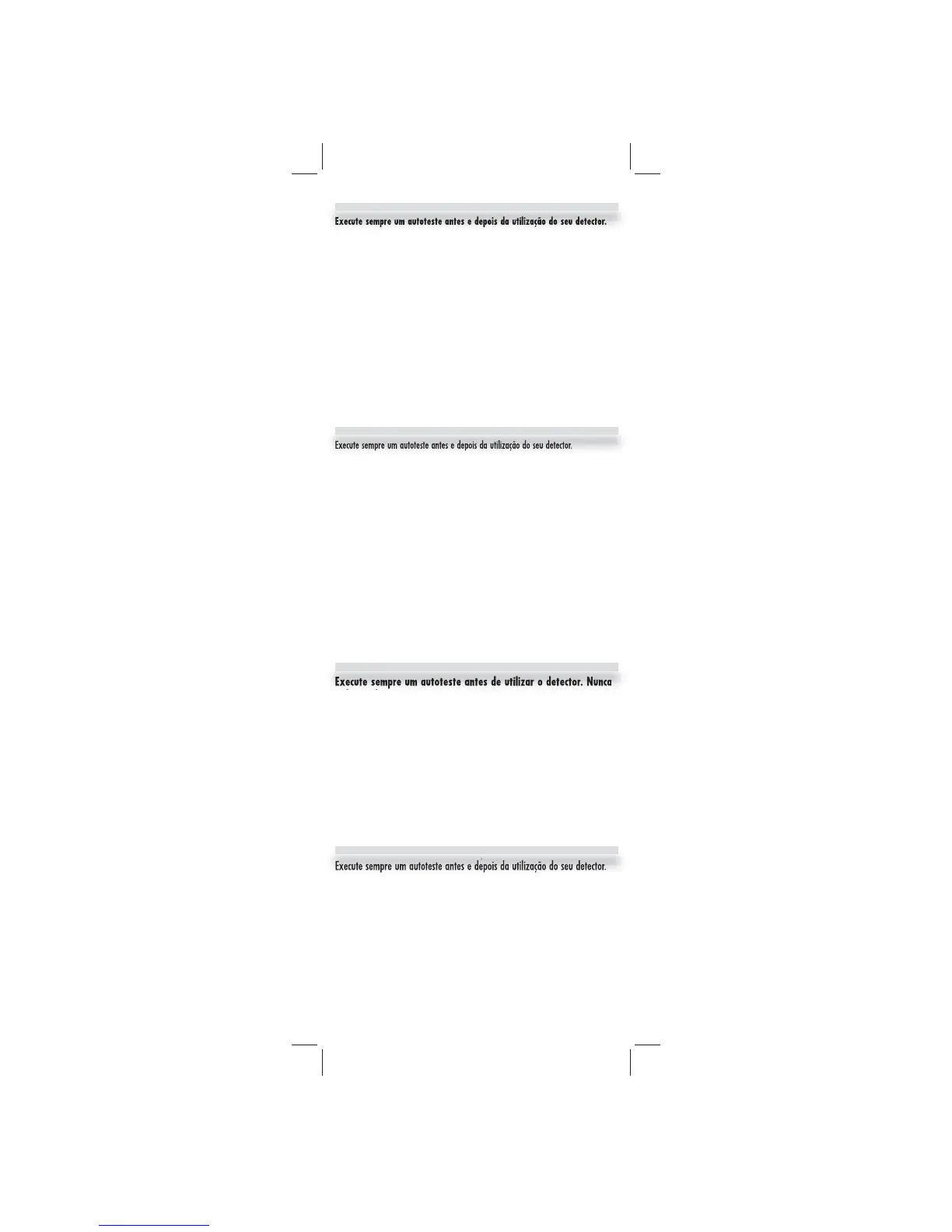 Execute sempre um autoteste antes e depois da utilização do seu detector.