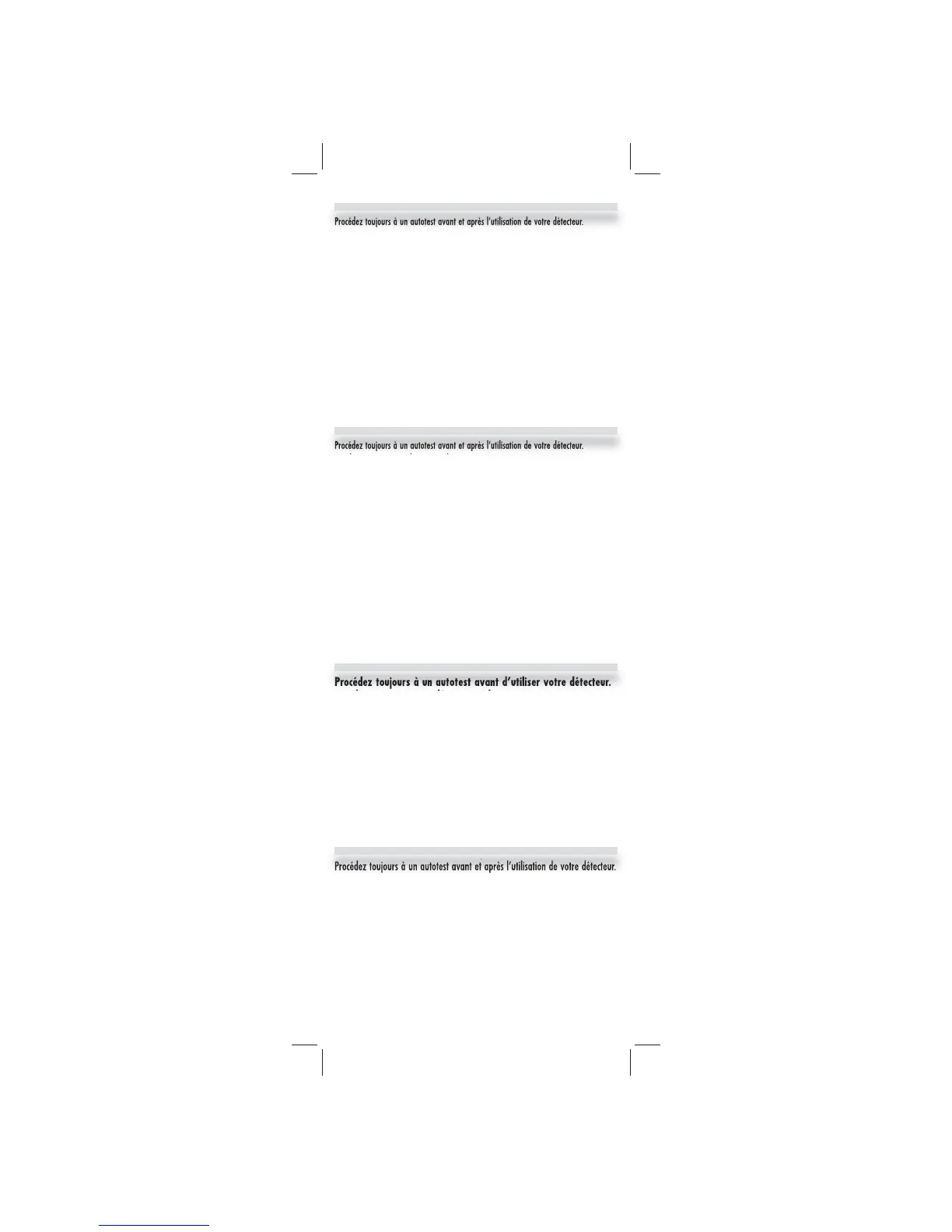 N’utilisez jamais votre détecteur si l’autotest est incorrect.
