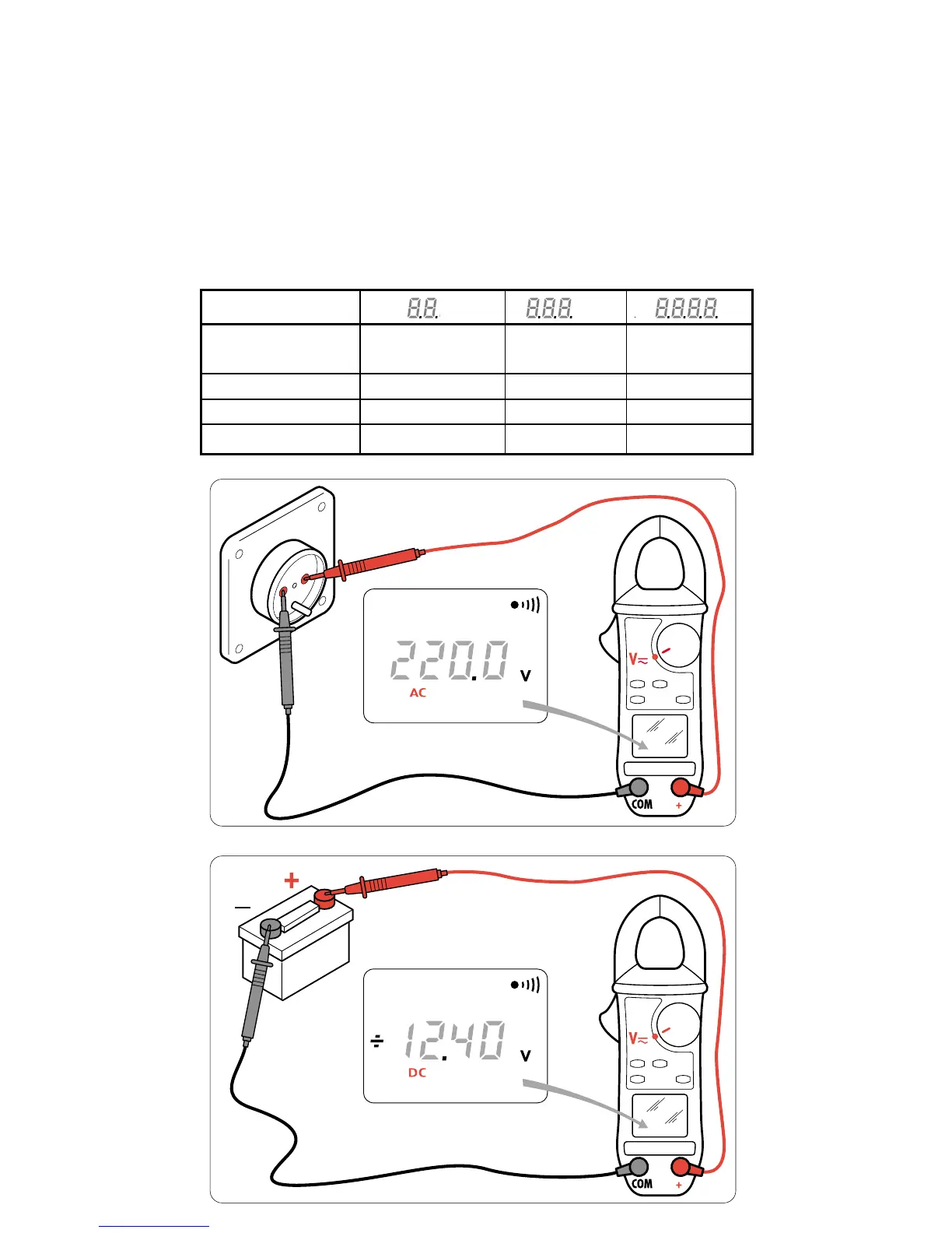 La commutation de gamme et la sélection AC/DC sont automatiques.