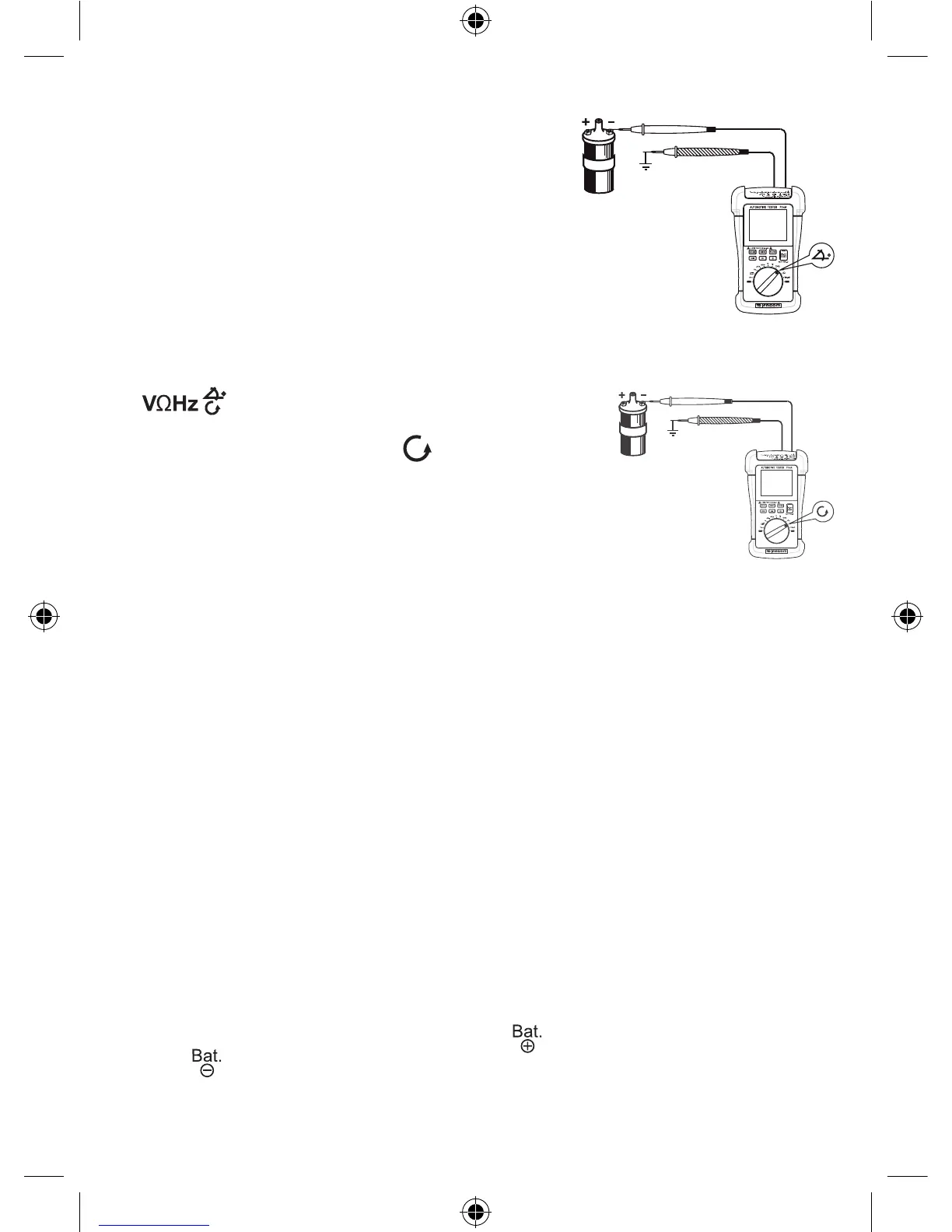 2. Se Figur 8: sæt stikkene på de to røde prøveledninger ind i de to " "-klemmer og stikkene på de to sorte prøveledning
