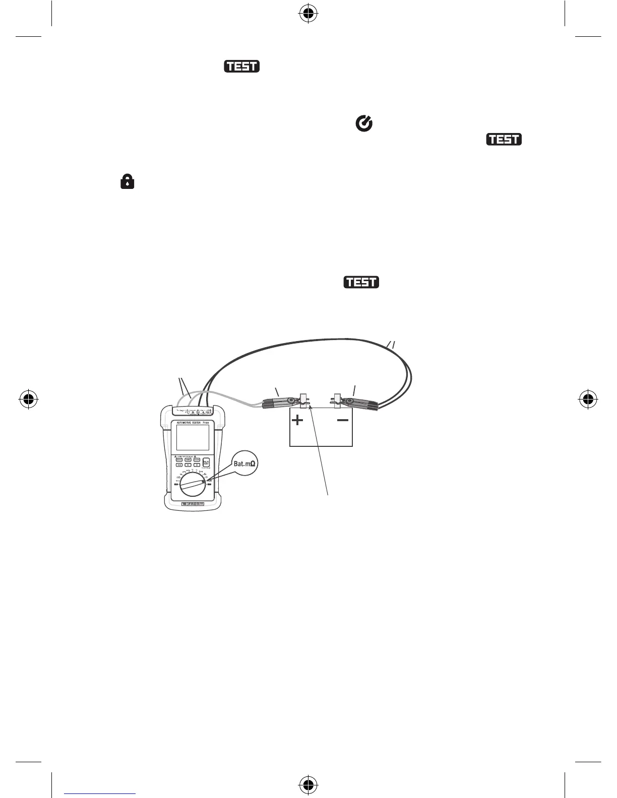 Hvis du i trin 4 trykker på "TEST"-tasten i mere end 2 sekunder for at starte målingen af den interne modstand, vises