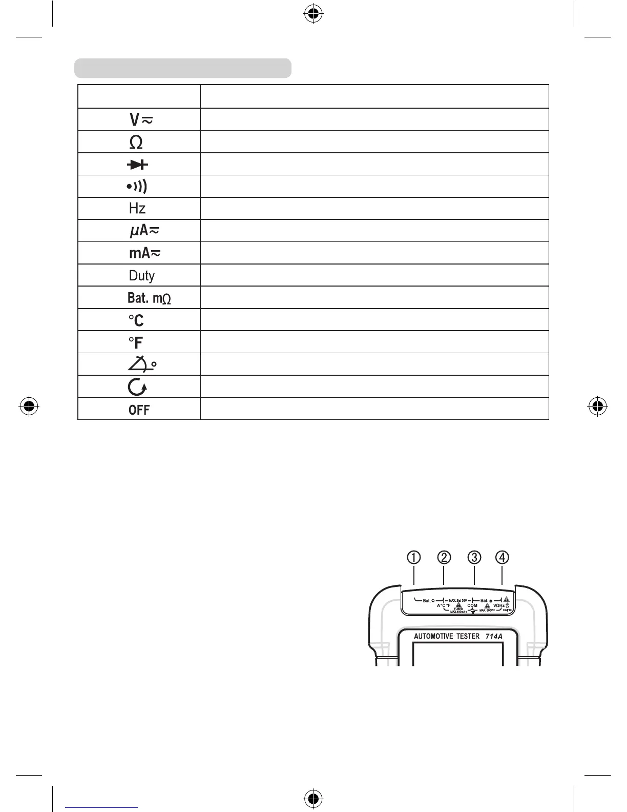 μετρήσεις θερμοκρασίας. Ακροδέκτης εξόδου του ρεύματος δοκιμής για μετρήσεις εσωτερικής αντίστασης μπαταρίας. Πρέπει