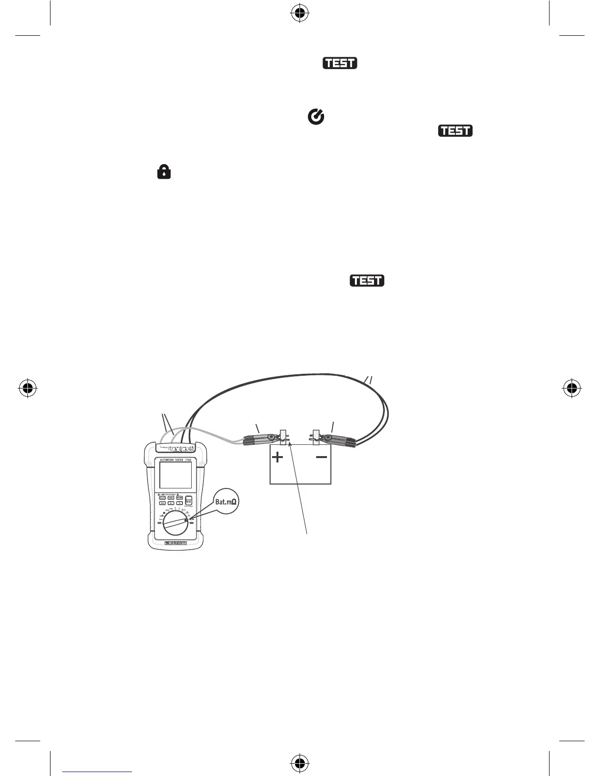 4. Apăsaţi butonul „TEST”. Pe ecran va apărea indicatorul „ ”, indicând faptul că măsurarea rezistenţei