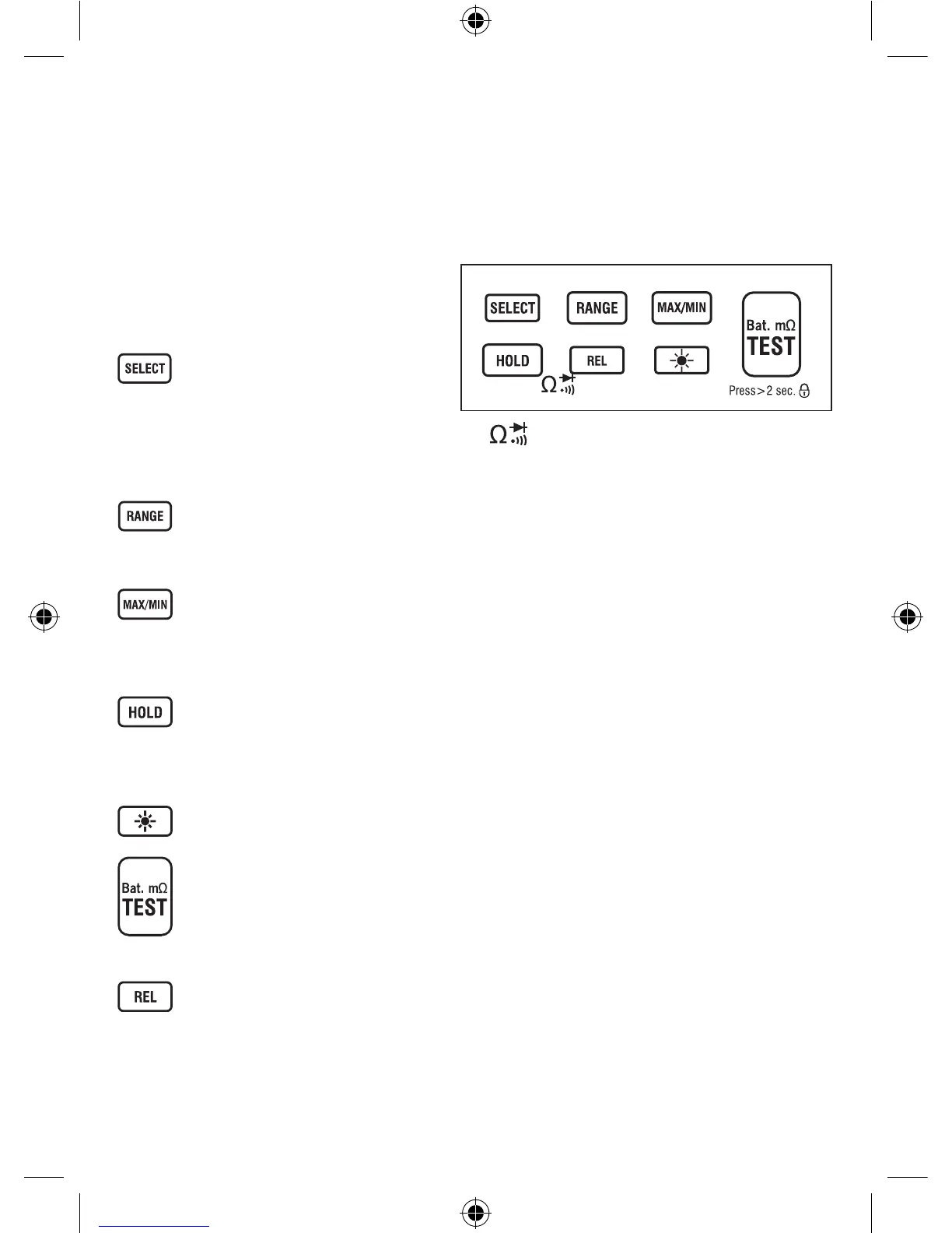 режиме "REL" эта кнопка функционирует нормально. В режиме удержания данных кнопки