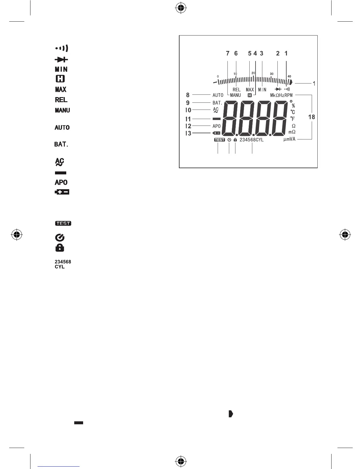 стрелка аналогового прибора. Справа от нее находится индикатор перегрузки ( ), слева – индикатор отрицательной