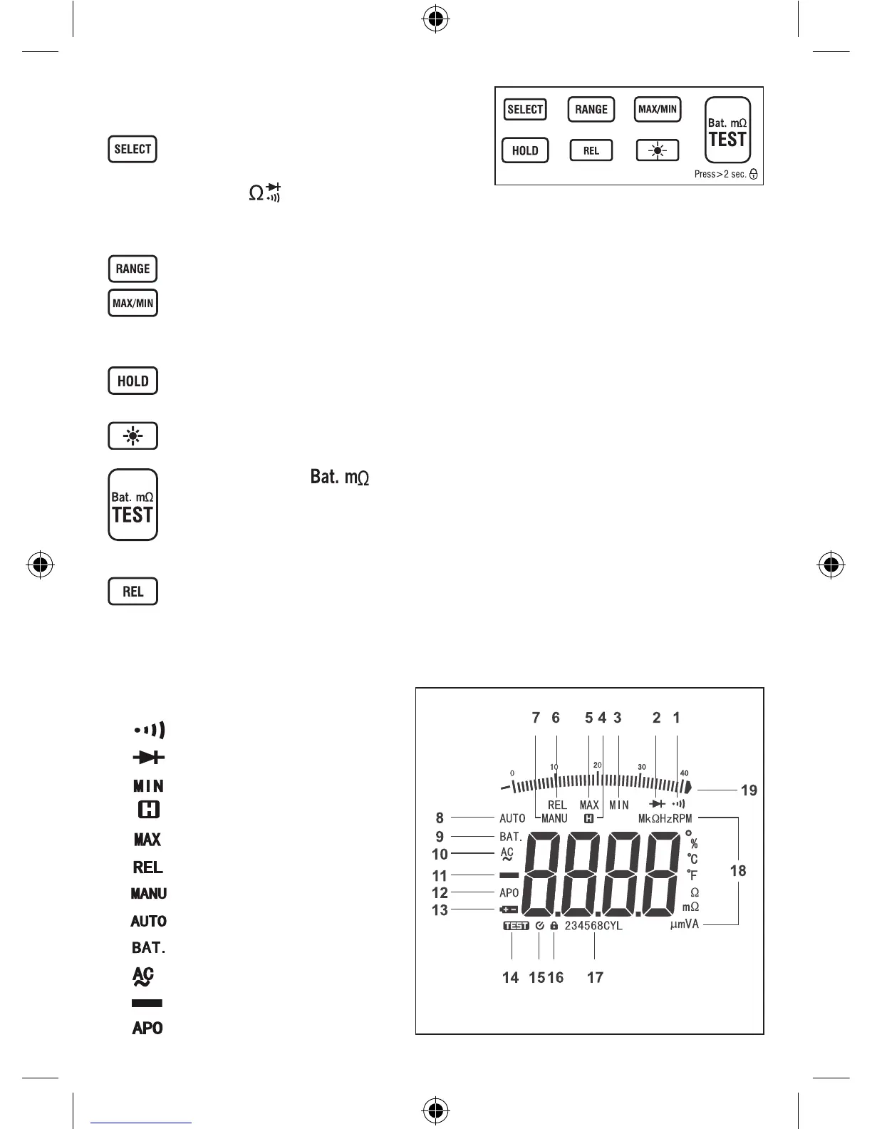the battery internal resistance, the measurement is locked and doesn’t stop until you press this button again.