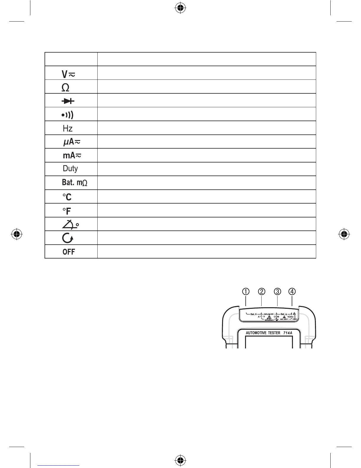 ➃Eingangsbuchse zur Messung von Spannung, Durchgang, Widerstand, Diode, Frequenz, U/min und Schließwinkel. Negative