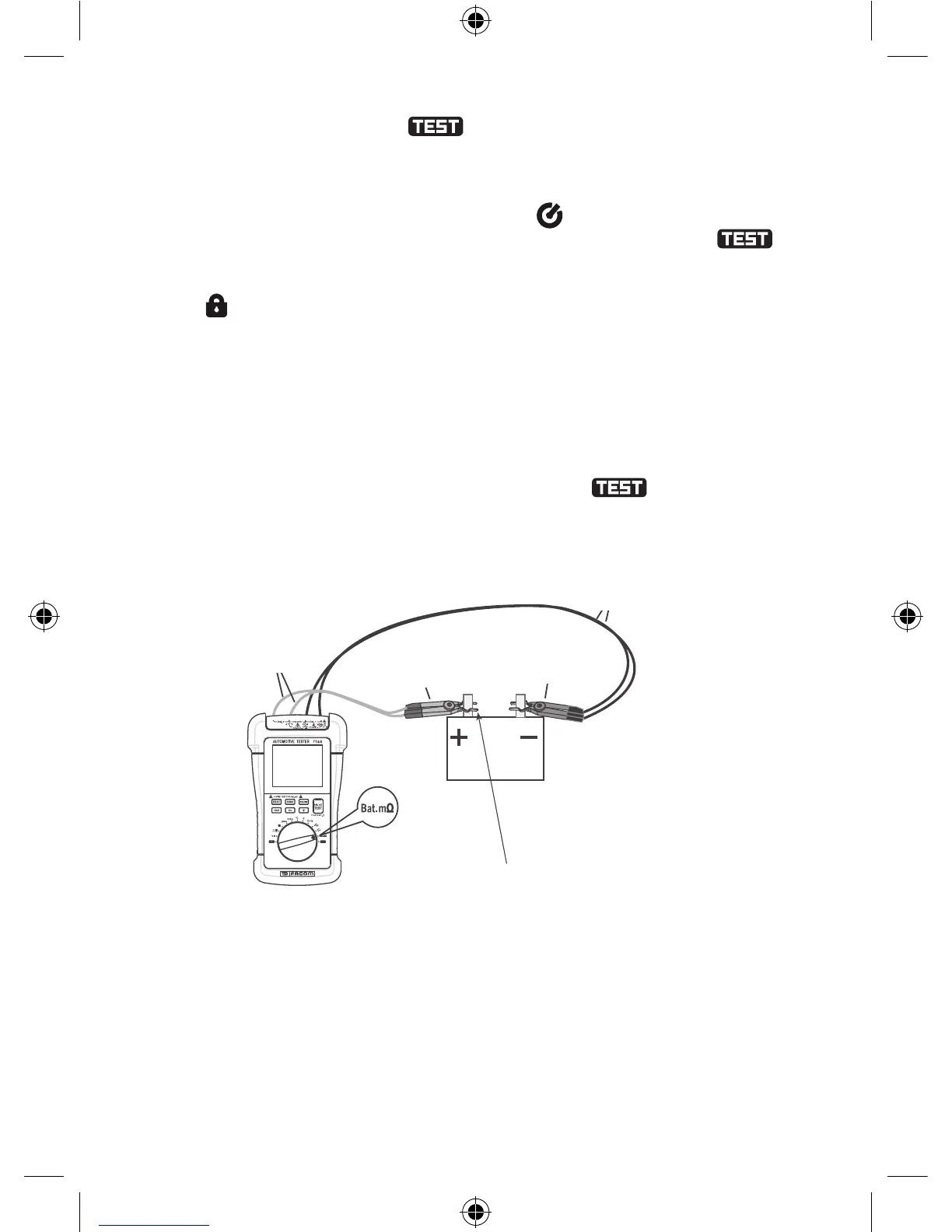 Wenn Sie in Schritt 4 kurz die "TEST"-Taste drücken, erscheint der Indikator " " am Display, d.h. die Innenwiderstandsmessung