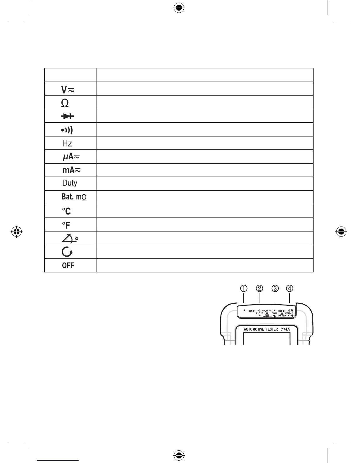 ➃Borne d'entrée pour les mesures de tension, de continuité, de résistance, de diode, de fréquence, de régime moteur et d'angle de
