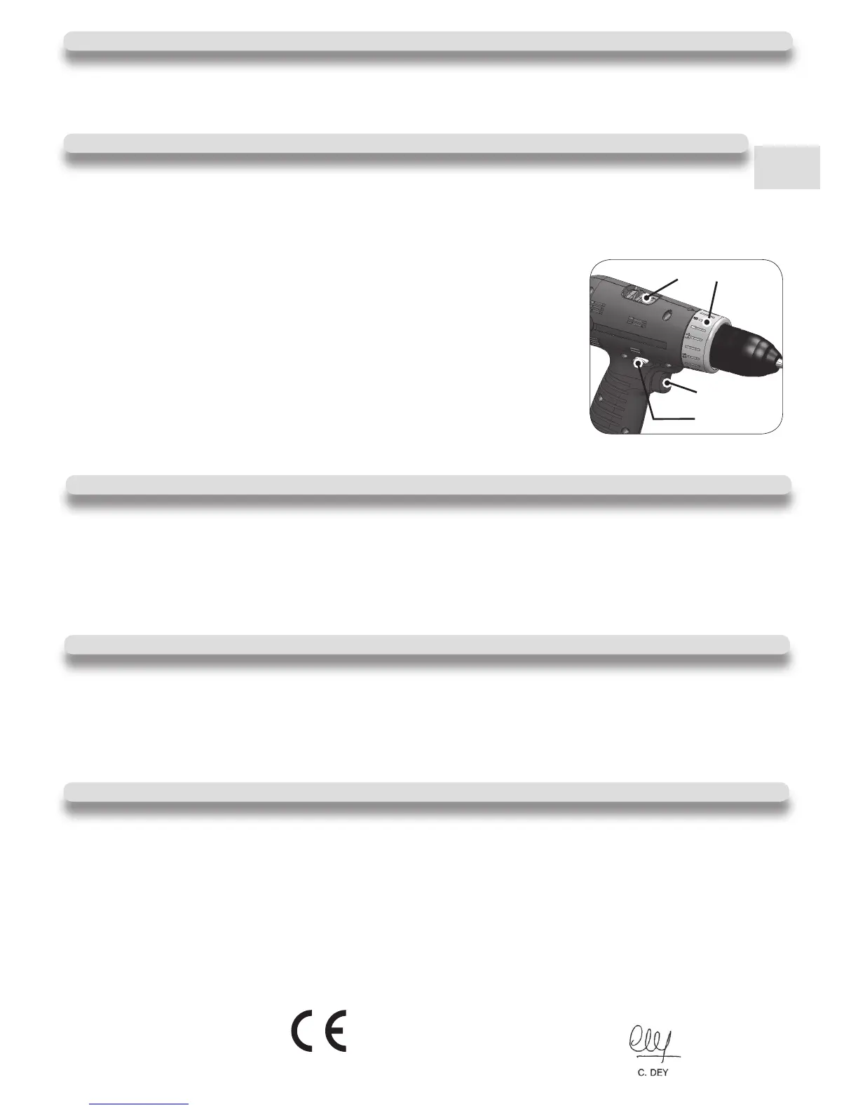 - Drücken Sie zunehmend auf den Druckschalter (Position 1), um den Bohrschrauber in Betrieb zu nehmen.
