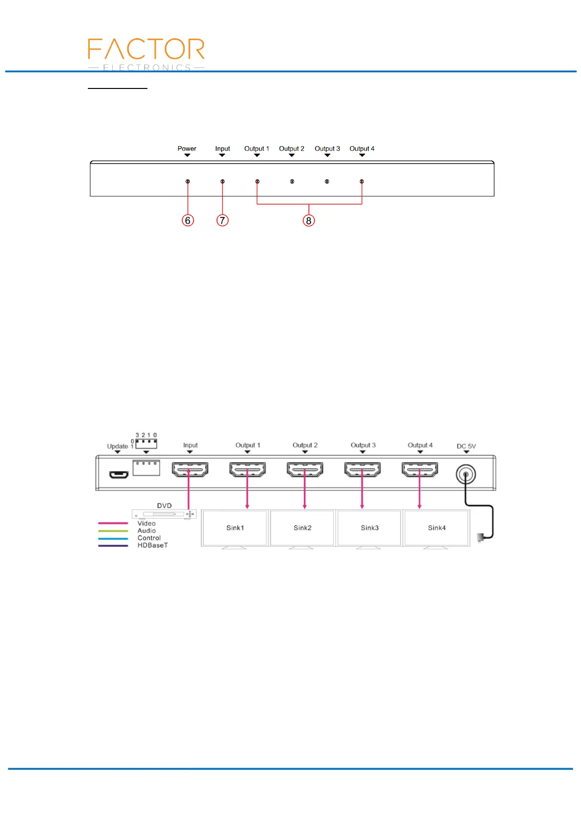 Factor Electronics HD-1x4-4K - Front Panel Indicators; Application Diagram