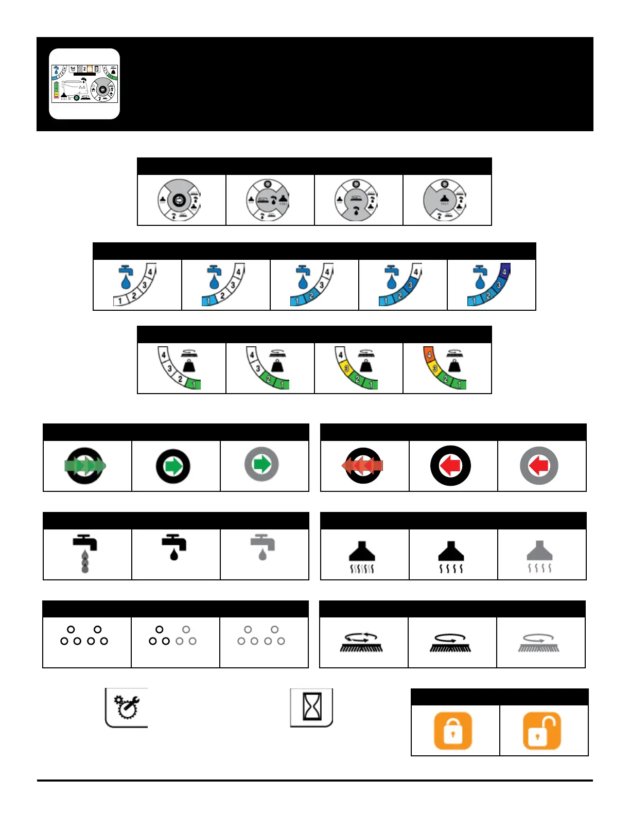 Factory Cat Micro-HD V2.0 - Touch Screen Symbols; Touch Screen - Mode Selection Symbols; Touch Screen - Solution & Down Pressure Symbols; Touch Screen - Motor & Suds Symbols