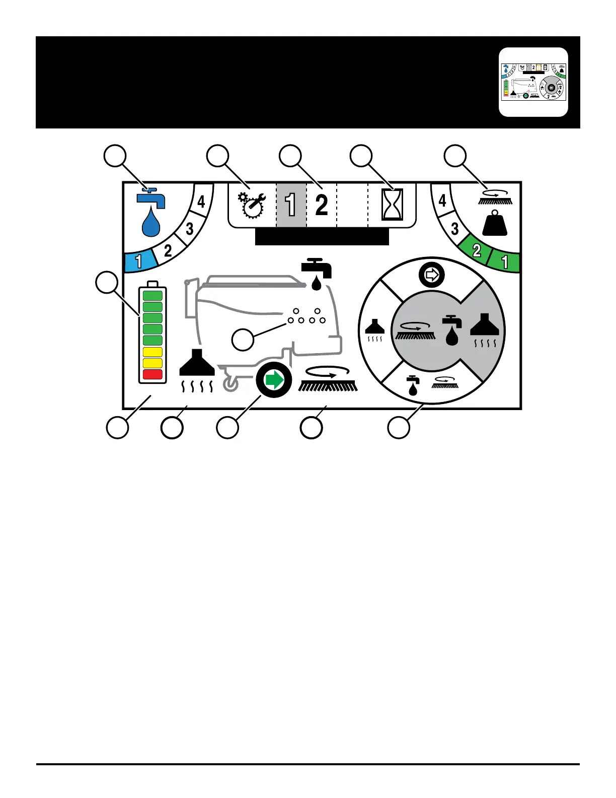 5. DOWN PRESSURE OUTPUT - Indicates the level of downpressure that is being applied to the floor surface (1 = low, 4 = high).