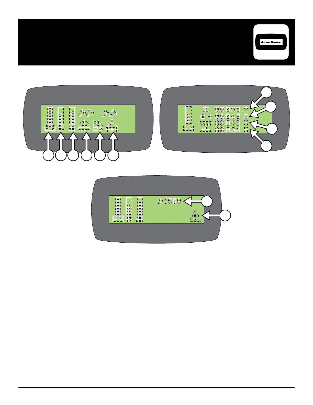 ** USE GREEN MENU SELECTION BUTTON ON CONTROL PANEL TO CHANGE SCREENS **