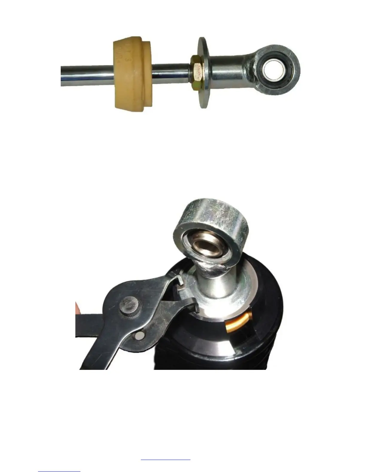 Install the snap ring on the spring hat so that it holds onto the shock end. Make sure that the slot in the