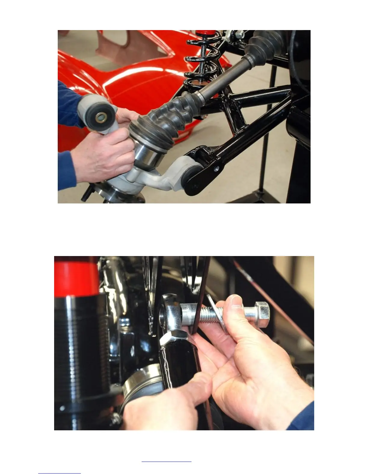 Screw in the rod end and jam nut into the upper arm and attach it to the chassis using a short equal