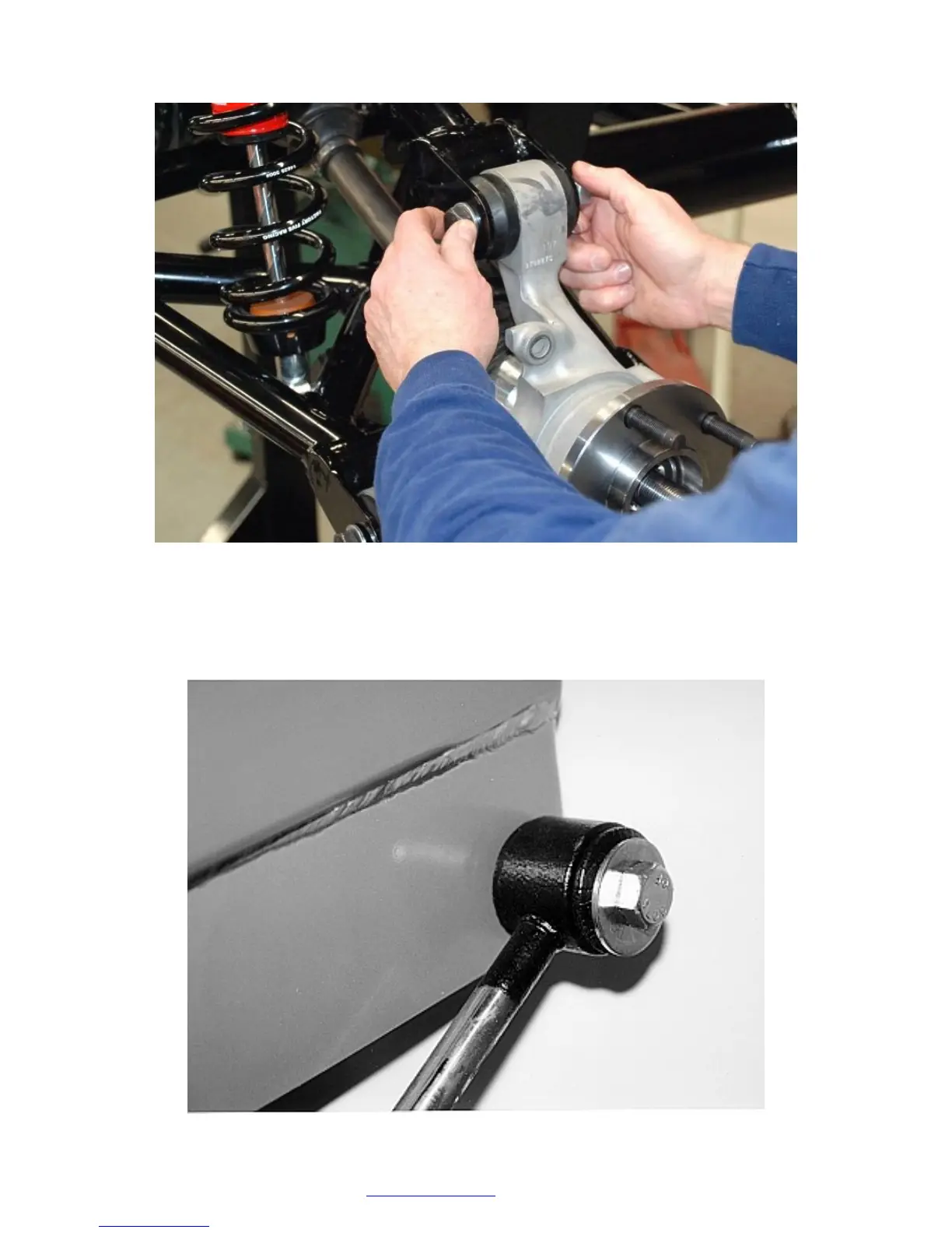 Attach the body end of the Quad shock to the upper arm of the IRS with the supplied metric bolt.