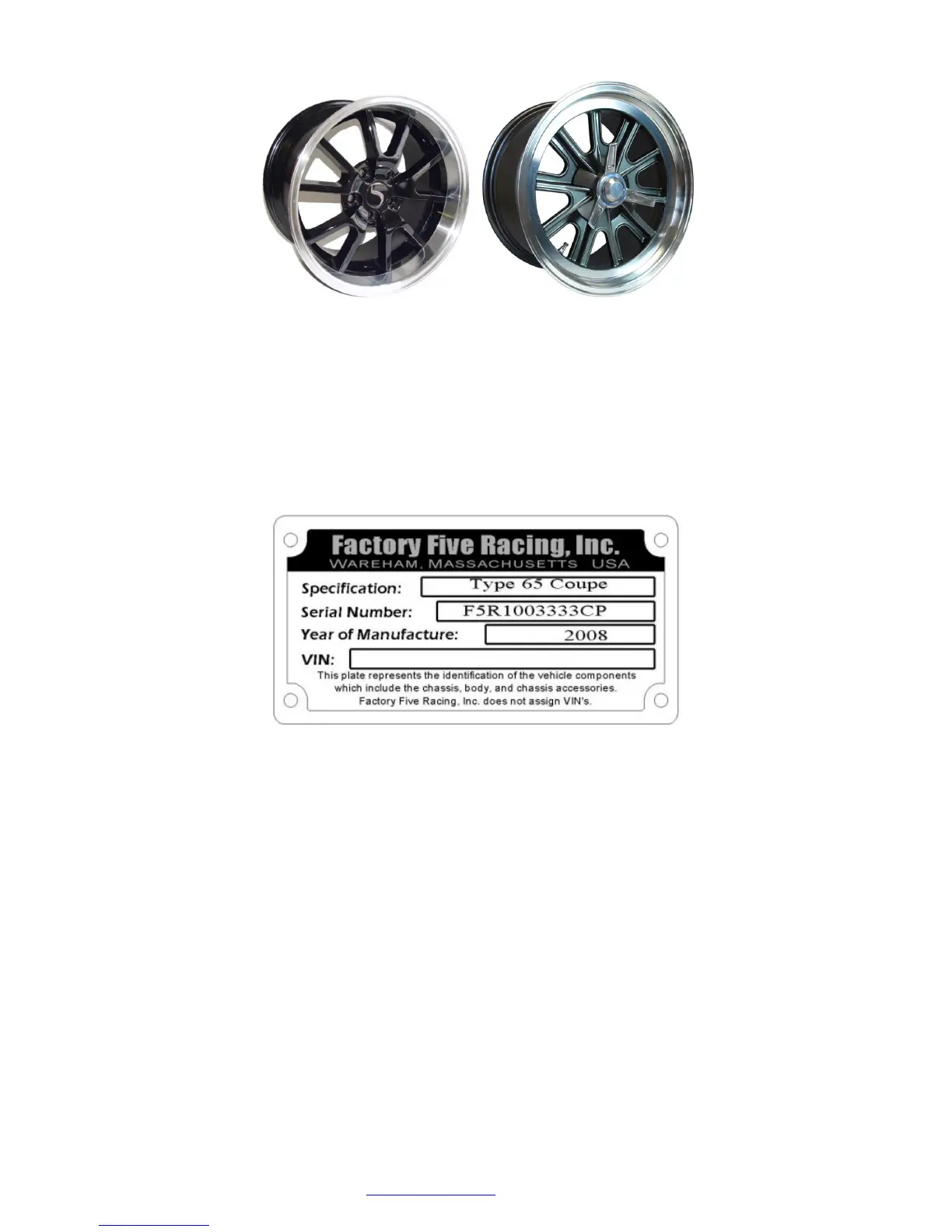Factory Five Racing has included a Certificate of Origin along with a Nameplate for your kit. The serial