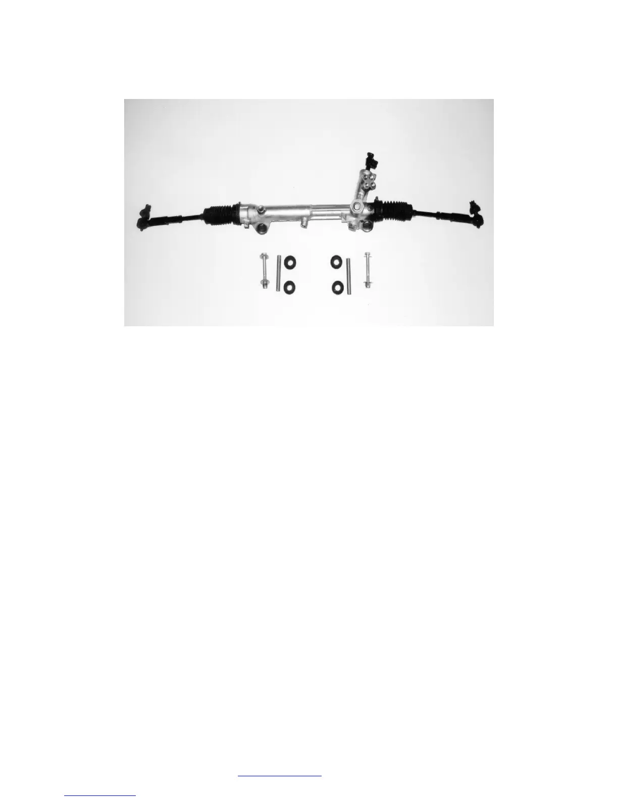 Mustang steering rack with lines removed with rubber bushings and fasteners.