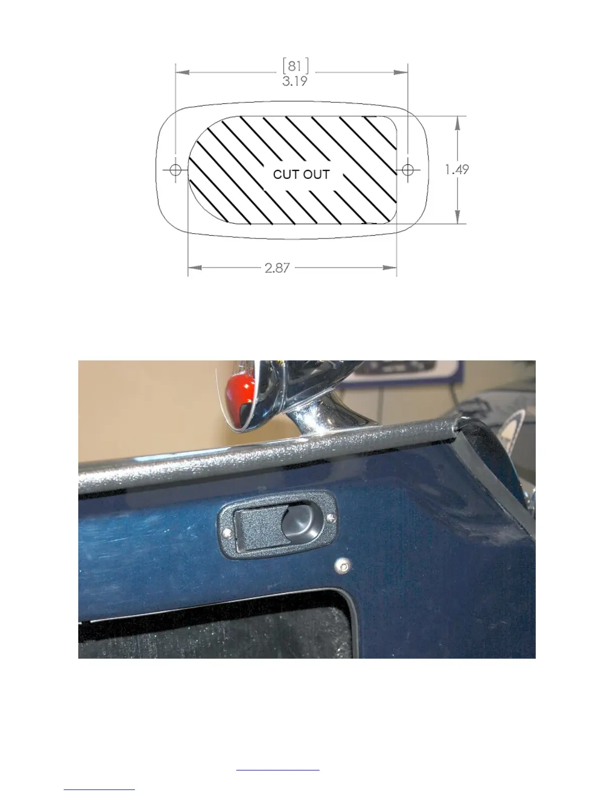 Using the door hinge diagram in the appendix, mark the cut out locations on the body as shown.