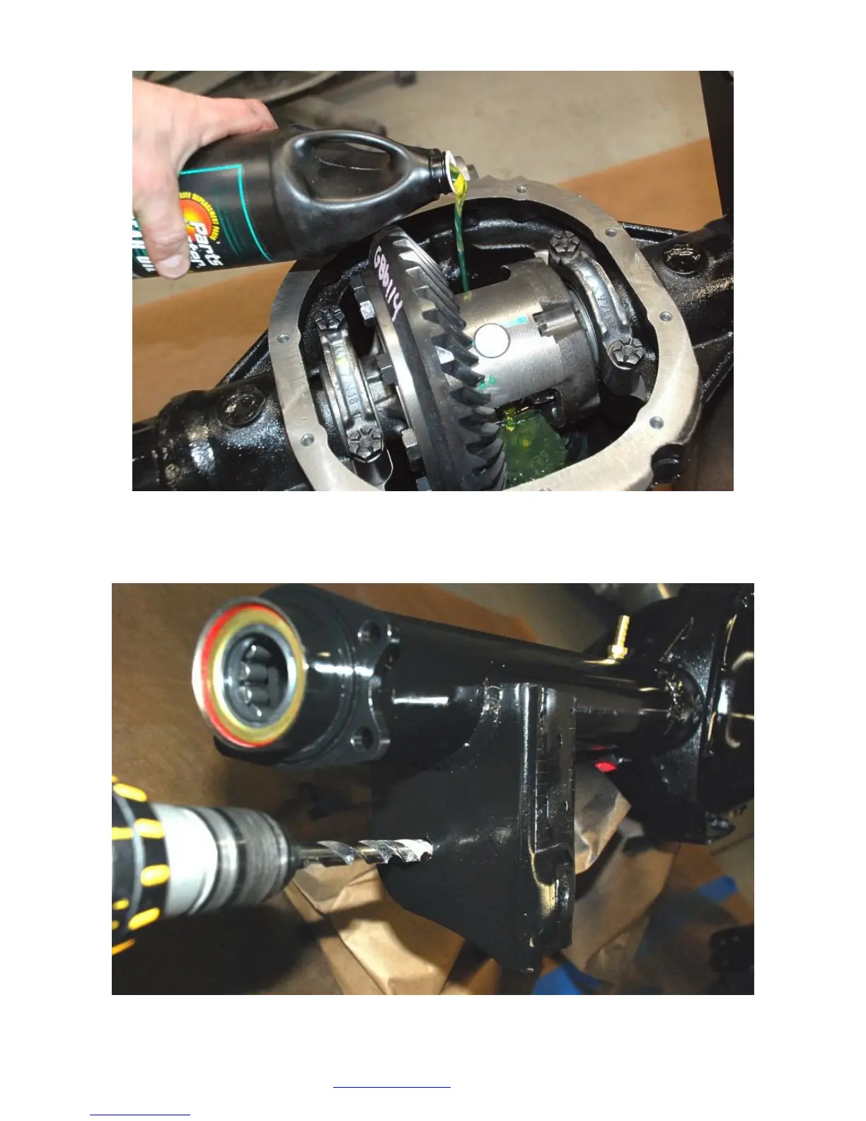 If using a used rear axle, remove the lower shock mounts and the anti vibration weight under the pinion.