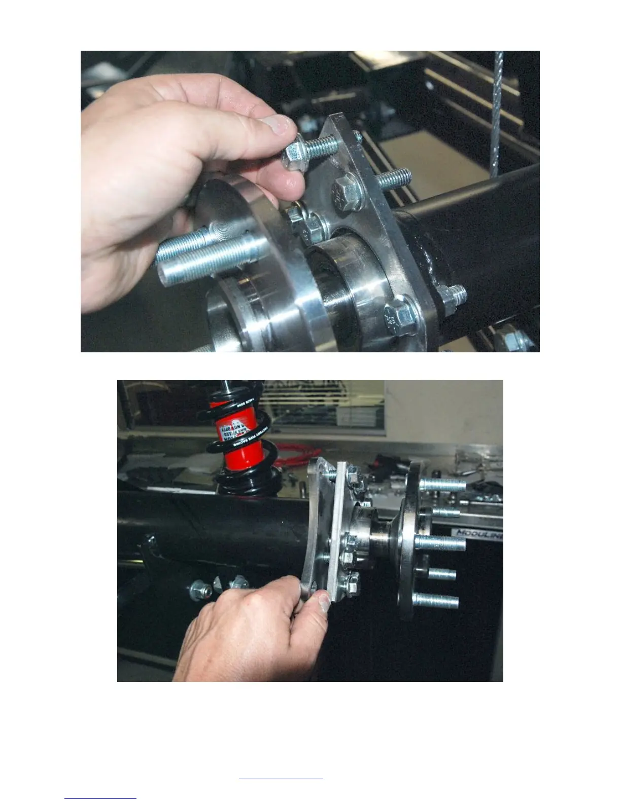 Insert the caliper mount bracket bolts from the outside in through the four remaining bracket holes.