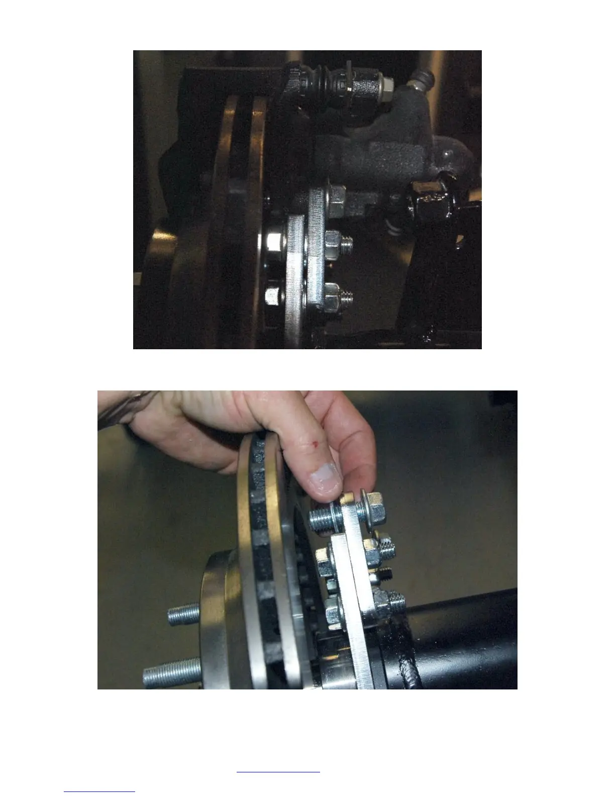 the caliper bracket and the caliper mount bracket or between the two brackets.