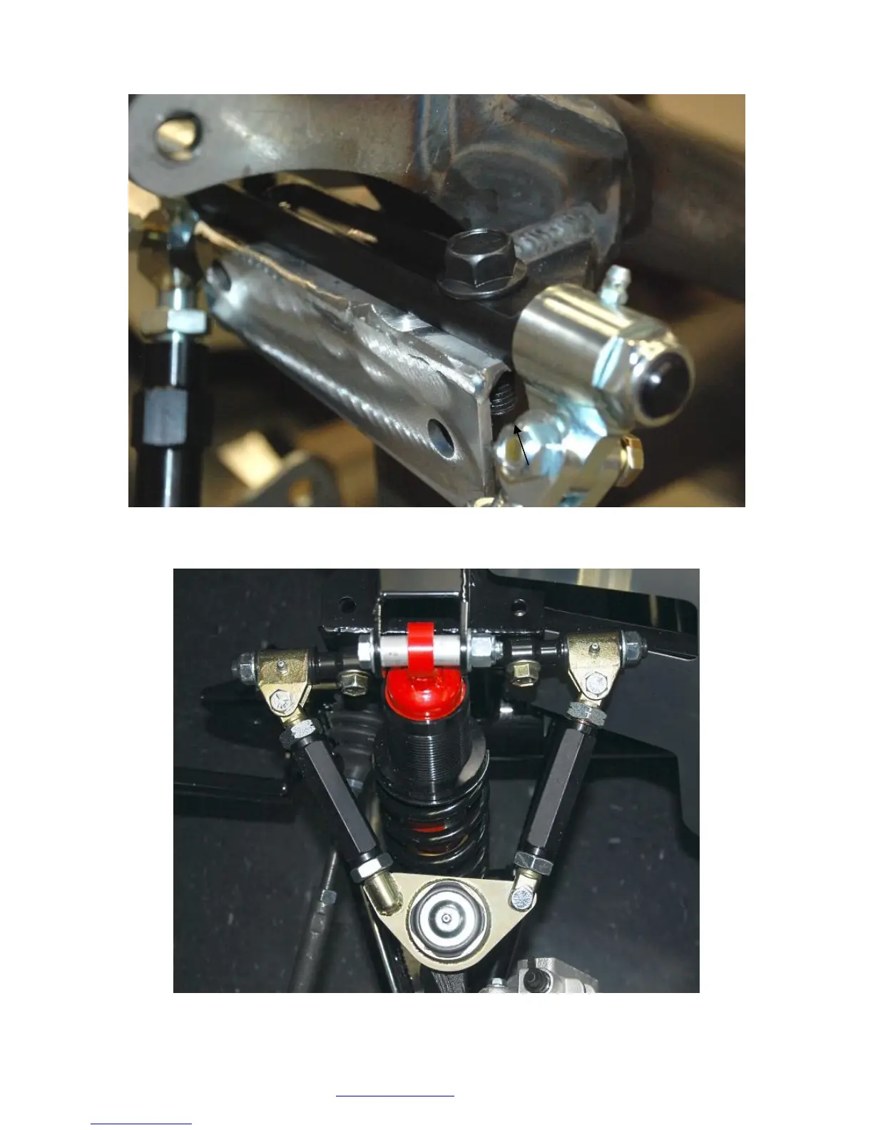 Mount the upper control arms to the chassis with the grease fittings pointed up. Use the mount holes