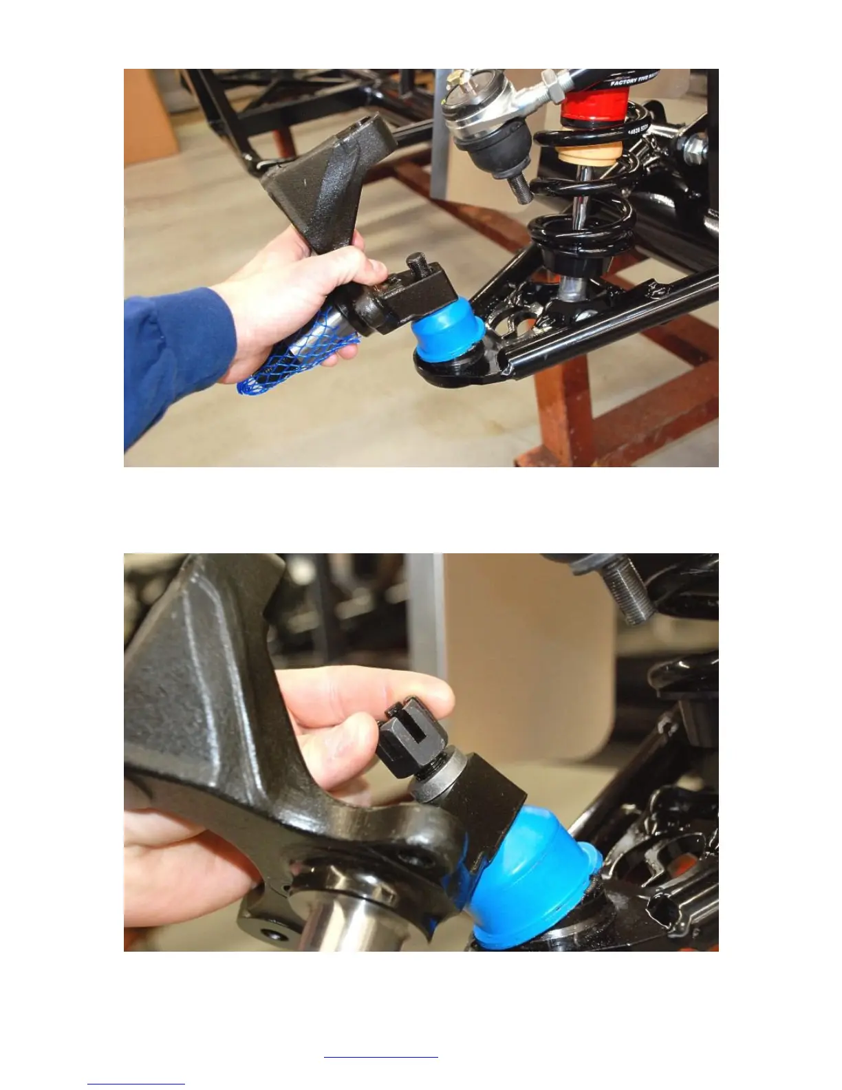Attach the upper ball joint to the spindle and torque to 75 ft-lbs and install the cotter pin.