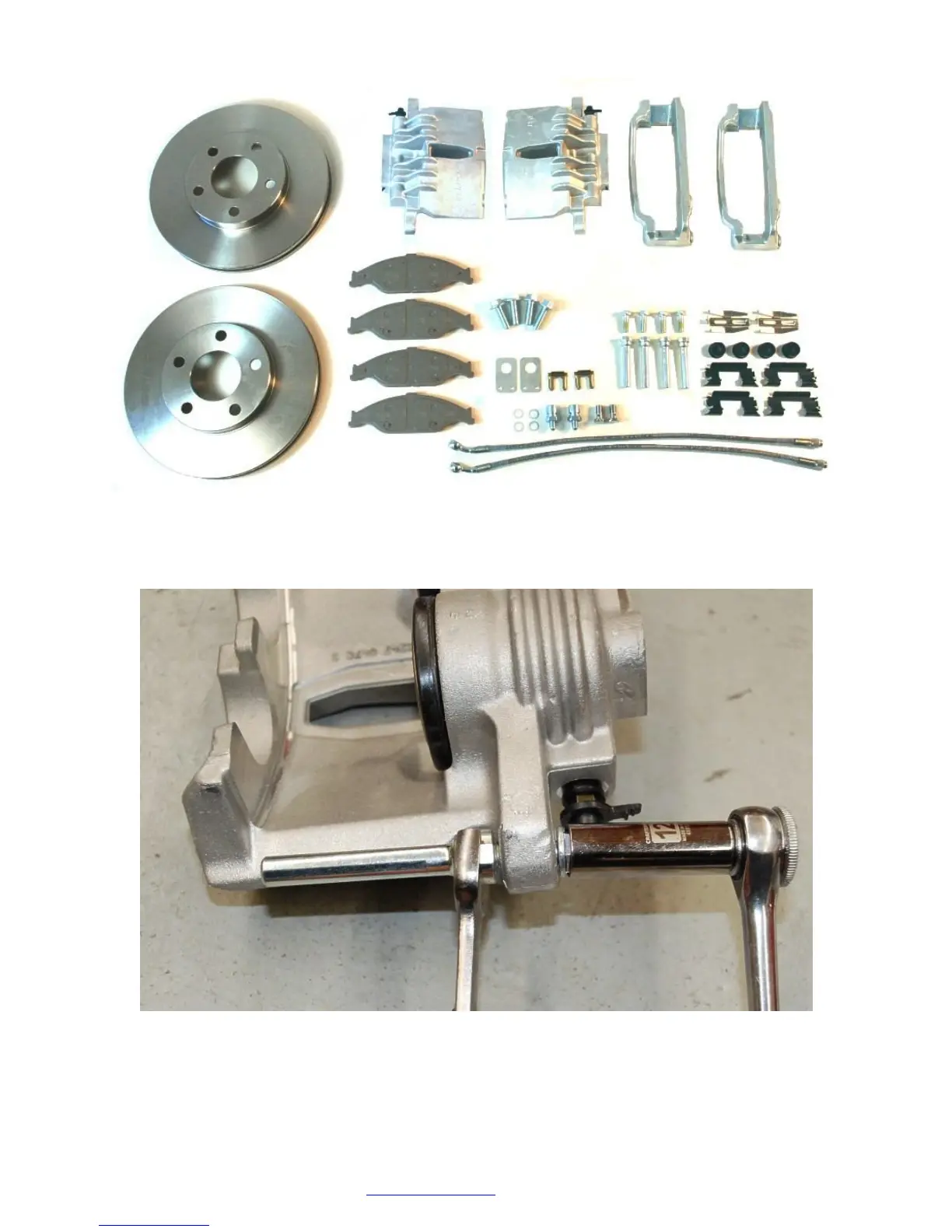 Install the caliper slider pins on the caliper using the supplied bolts and a 16mm wrench and 12mm