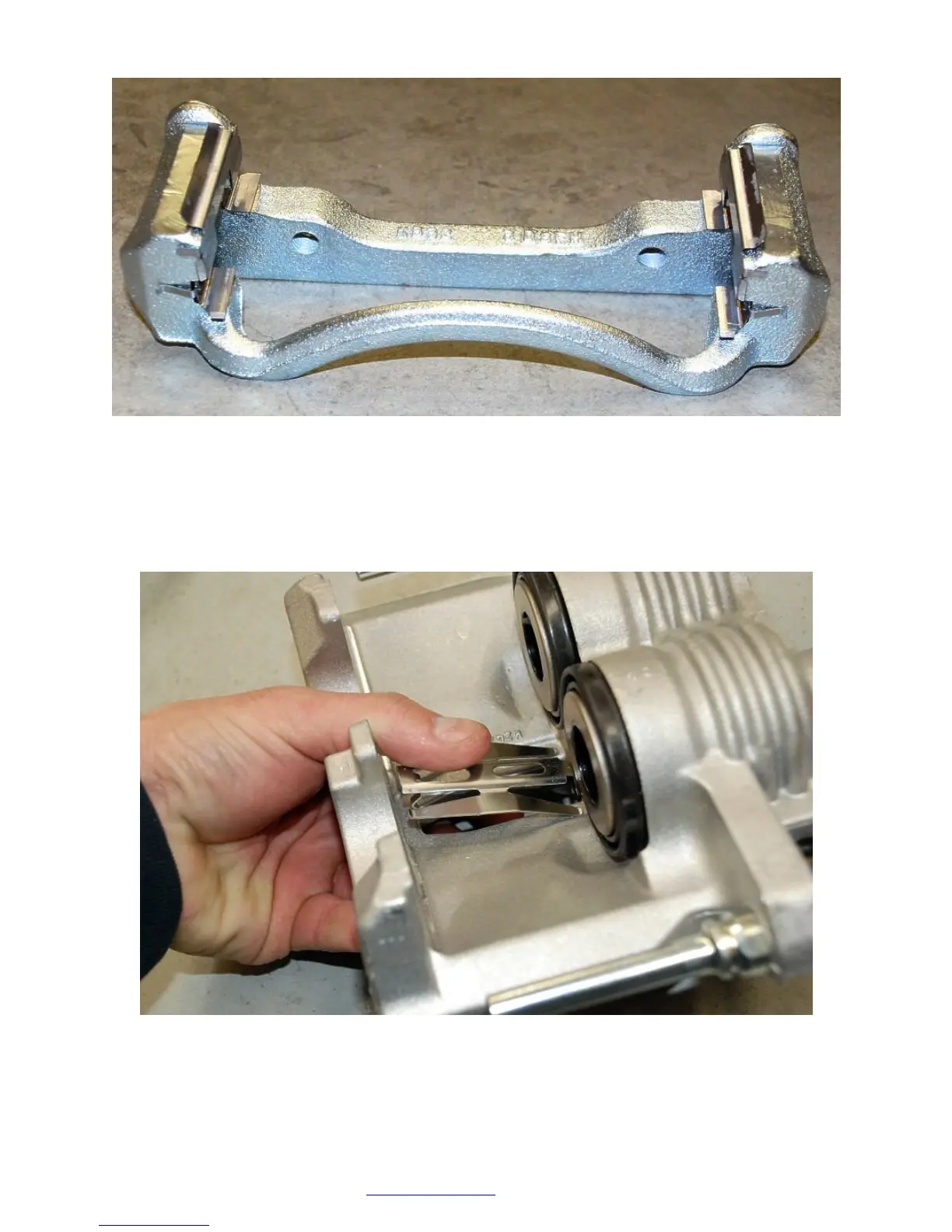 The two clips that are left go in the center of the caliper with the tab sticking up through the center hole.