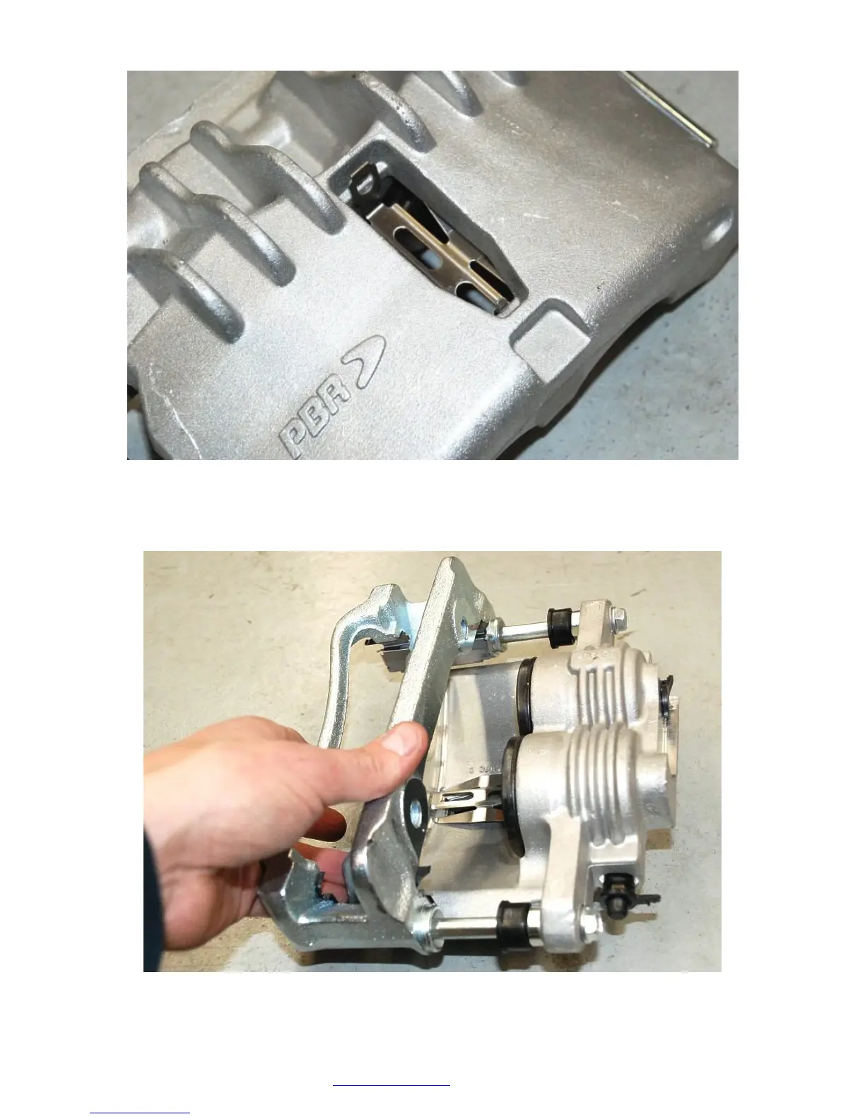 Slide the caliper hanger onto the caliper.