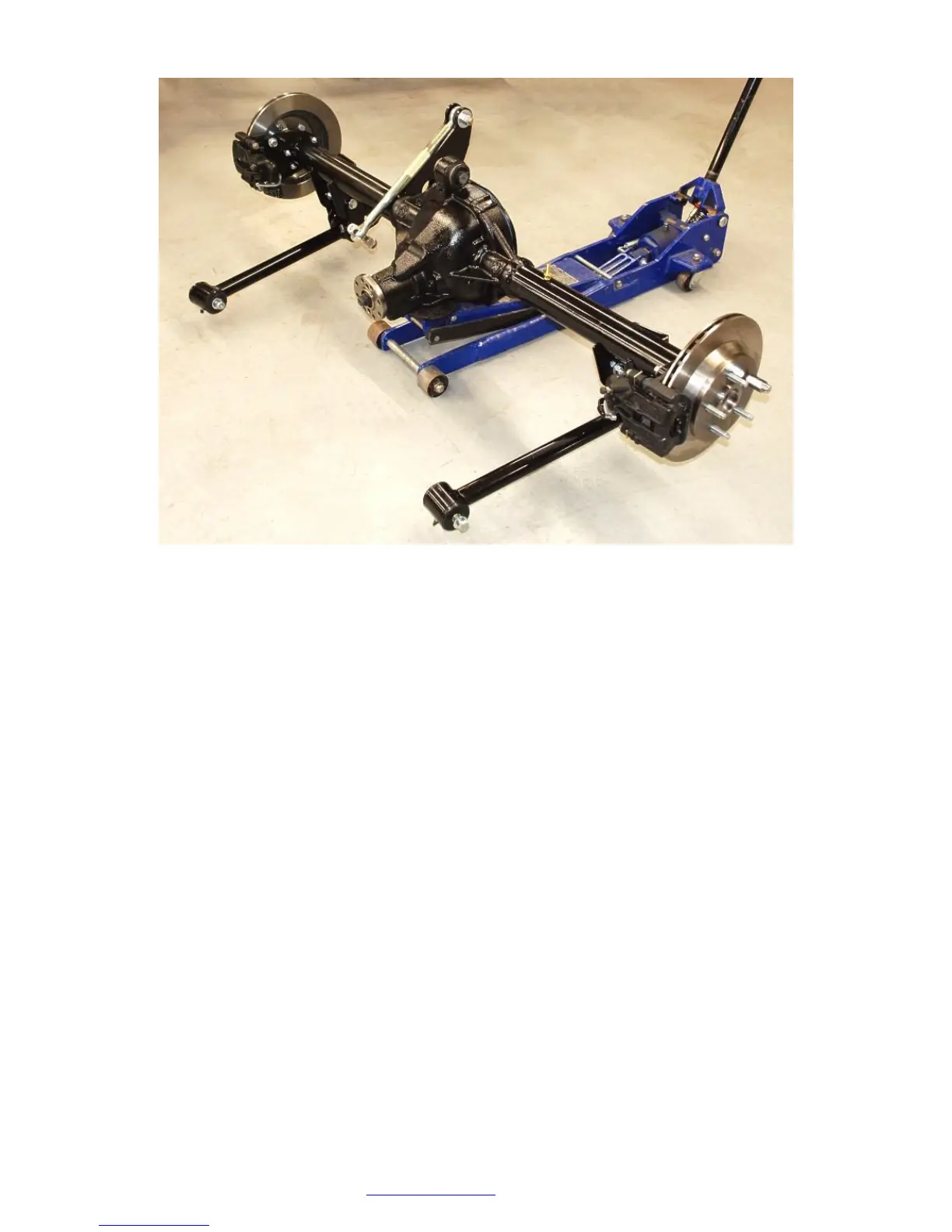 With one person holding a side of the axle, raise the axle so that the lower control arms can be bolted