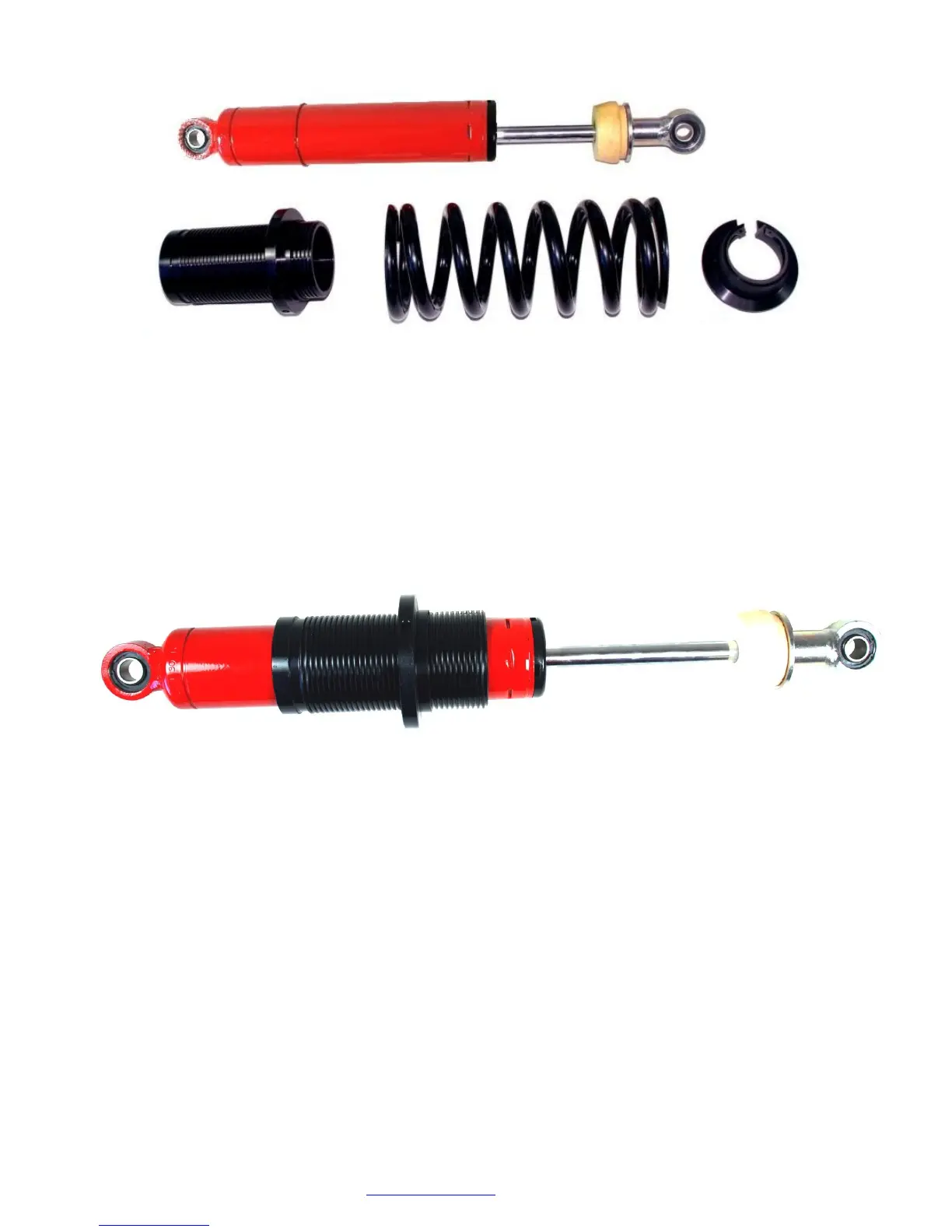 Slide the coil sleeve over the body of the damper beginning at the end which has the rubber bump stop.