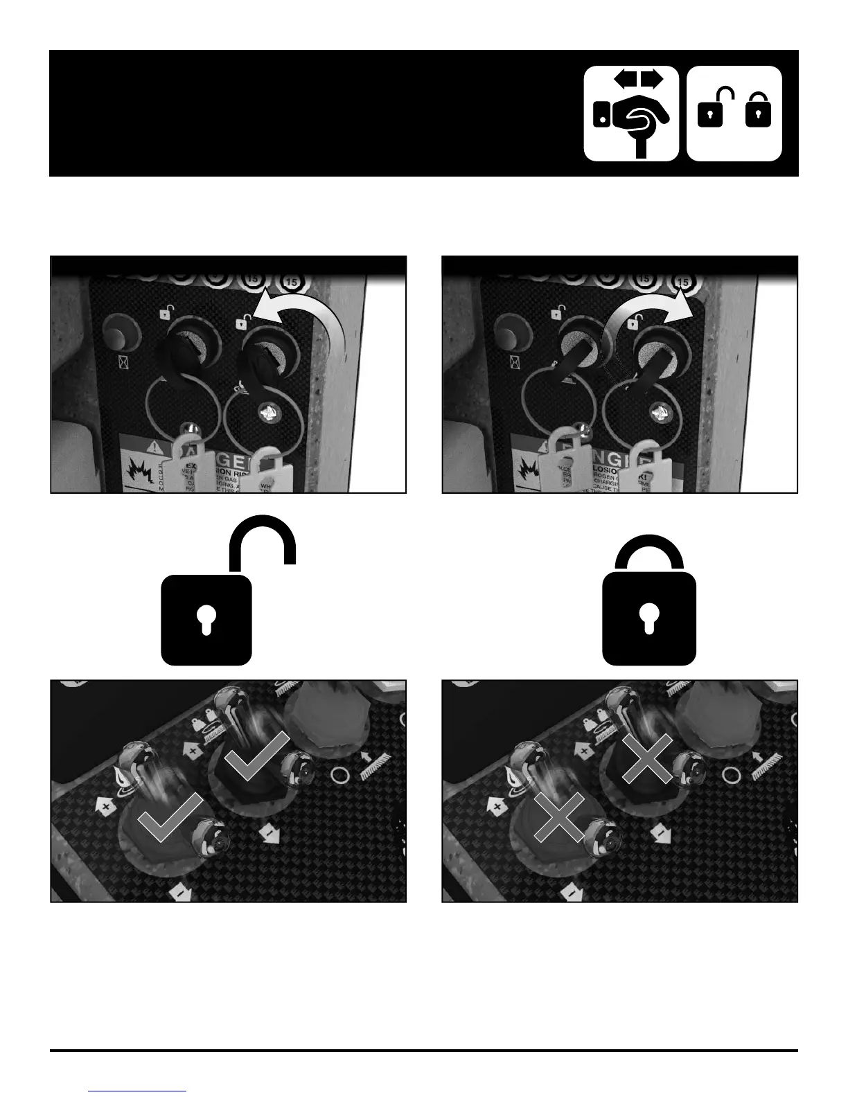 When the key is in the LOCKED position, keys can be removed and Solution OR Down-pressure cannot be adjusted.